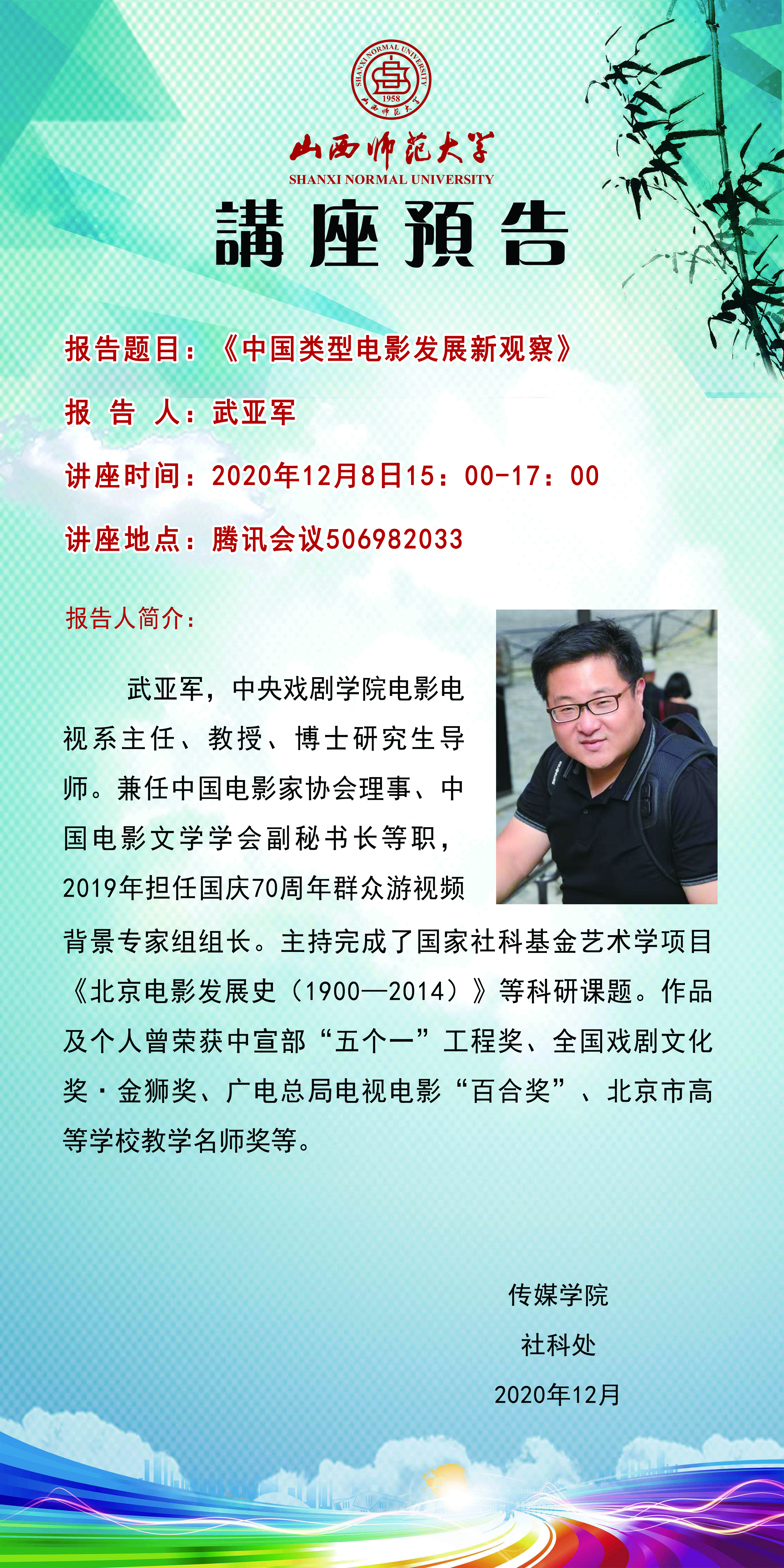 【预告】 中央戏剧学院武亚军教授应传媒学院邀请作线上学术报告