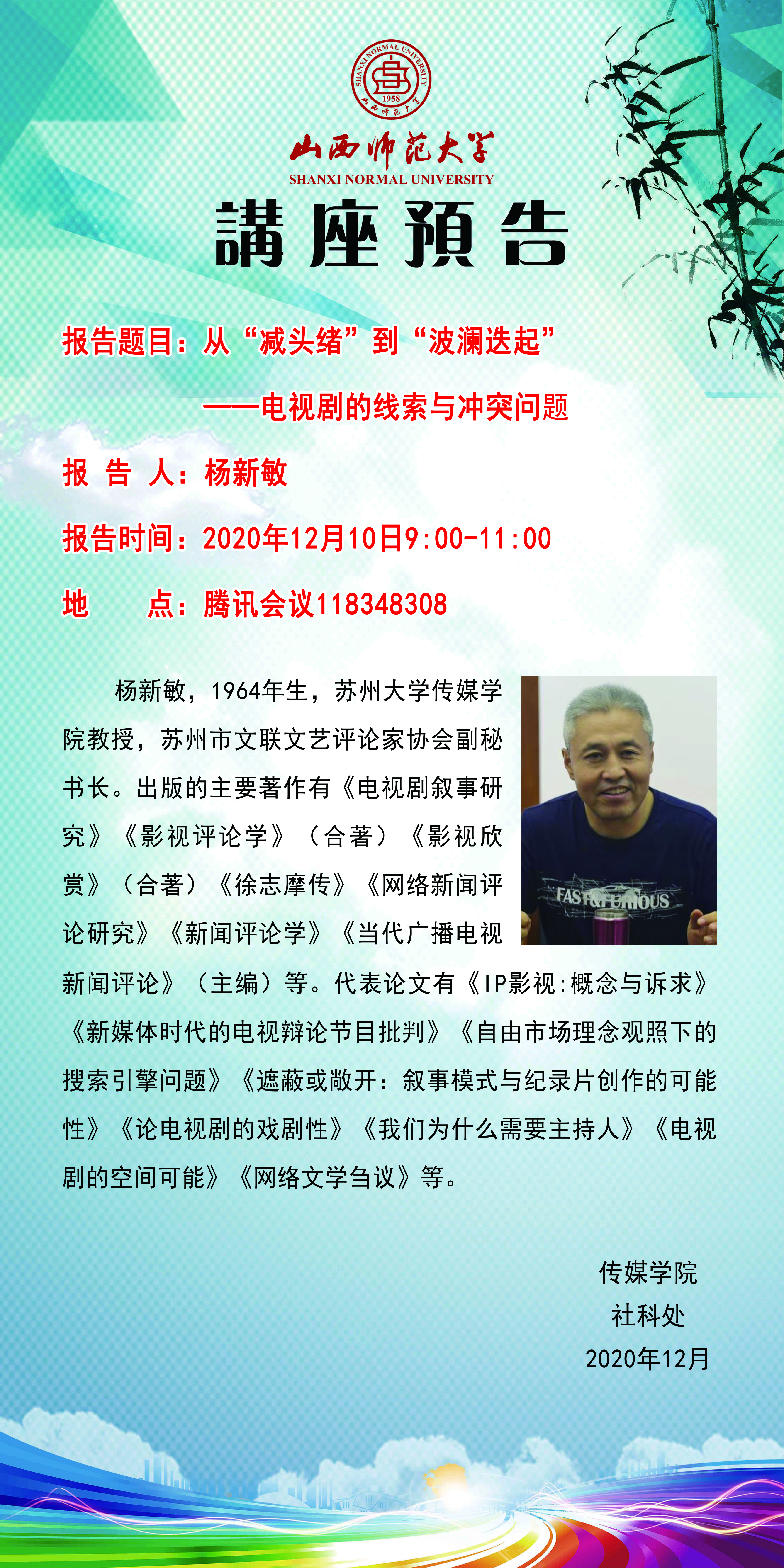 【预告】 苏州大学杨新敏教授应传媒学院邀请作线上学术报告