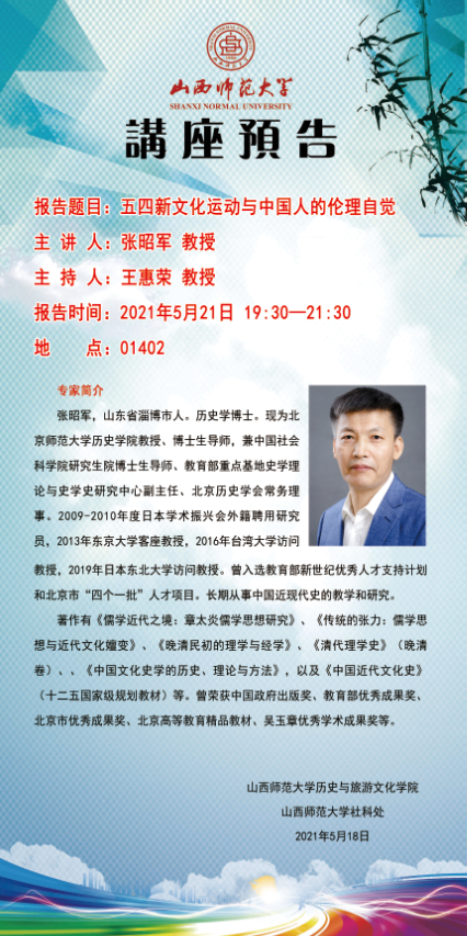 【预告】北京师范大学历史学院张昭军教授应历史与旅游文化学院邀请来永利官网作学术报告