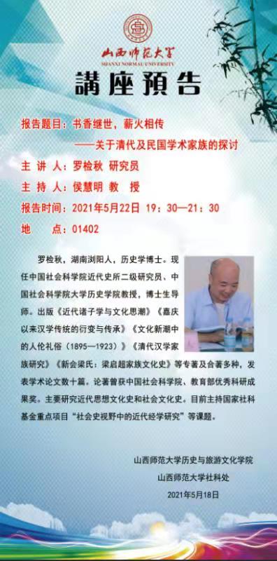 【预告】中国社会科学院近代史所罗检秋研究员应历史与旅游文化学院邀请来永利官网作学术报告