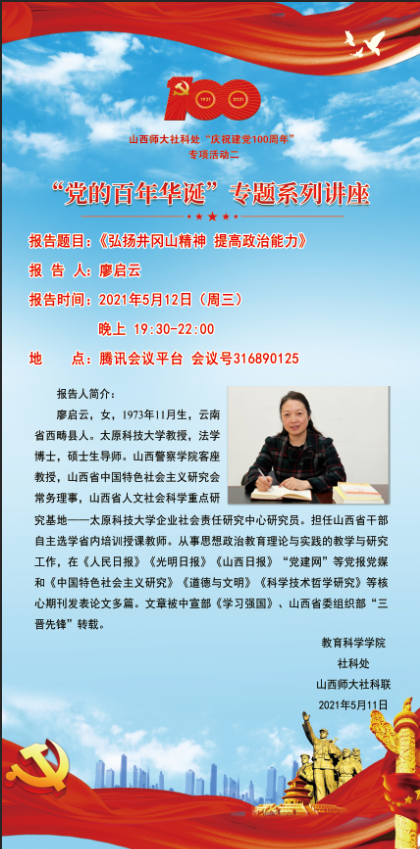 【预告】“党的百年华诞”专题系列讲座五:弘扬井冈山精神 提高政治能力