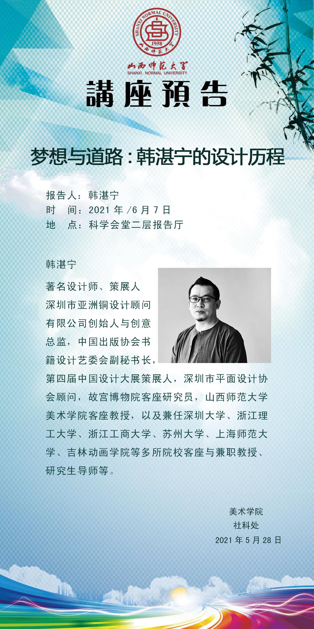 【预告】永利官网杰出校友、国际著名设计师、策展人韩湛宁教授应美术学院邀请来永利官网作学术报告