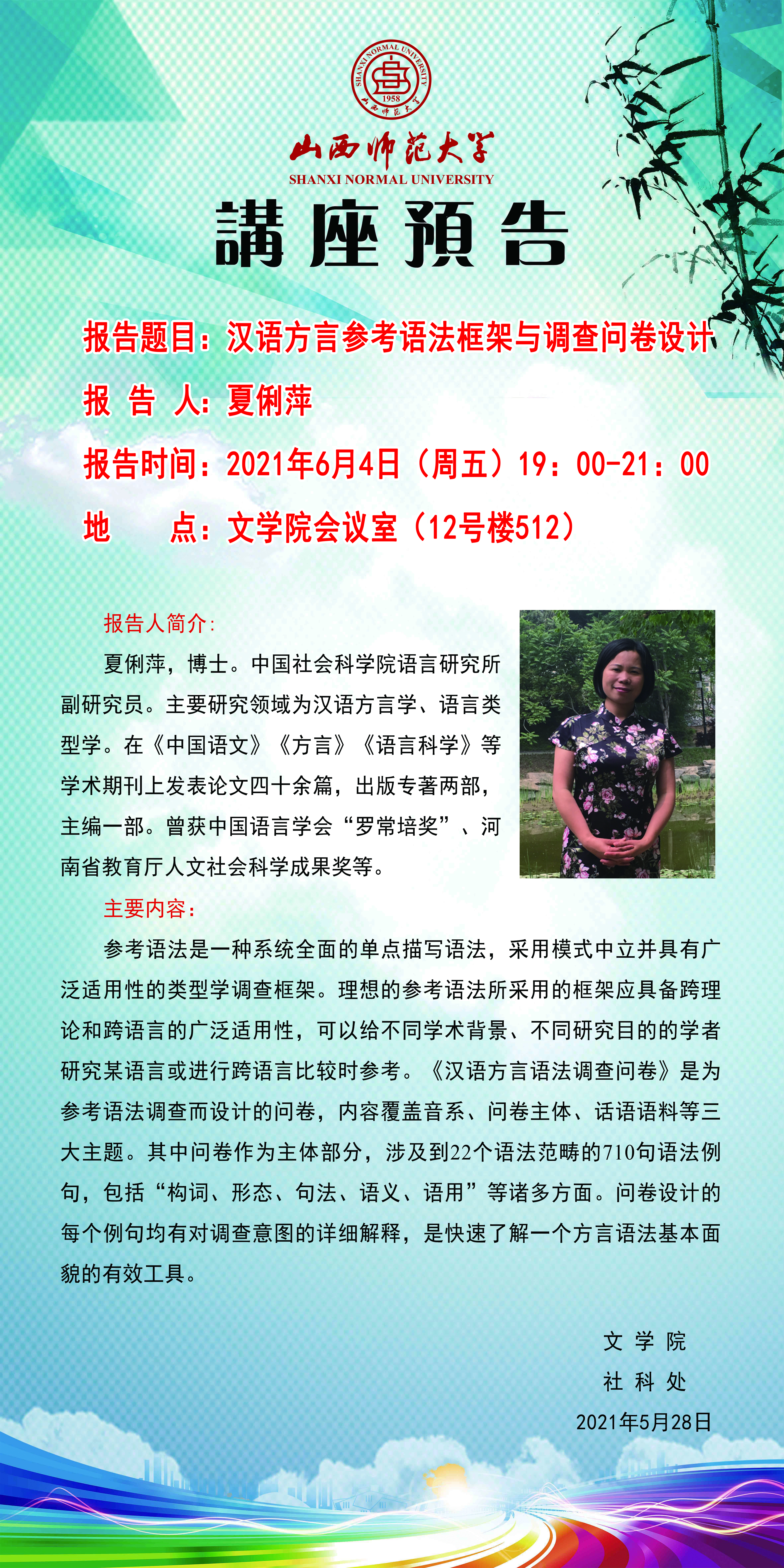【预告】中国社会科学院语言研究所副研究员夏俐萍应文学院邀请来永利官网作学术报告
