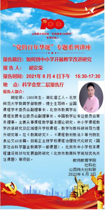 【预告】“党的百年华诞”专题系列讲座十:如何到中小学开展教学改进研究