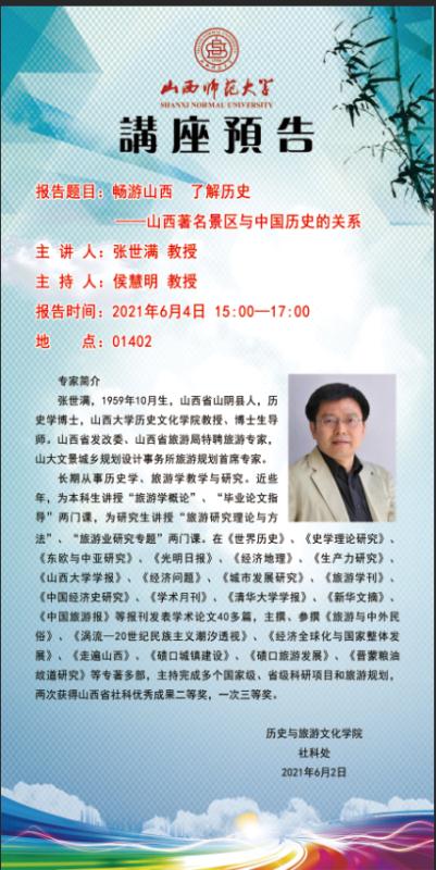 【预告】 山西大学张世满教授应历史与旅游文化学院邀请来永利官网作学术报告