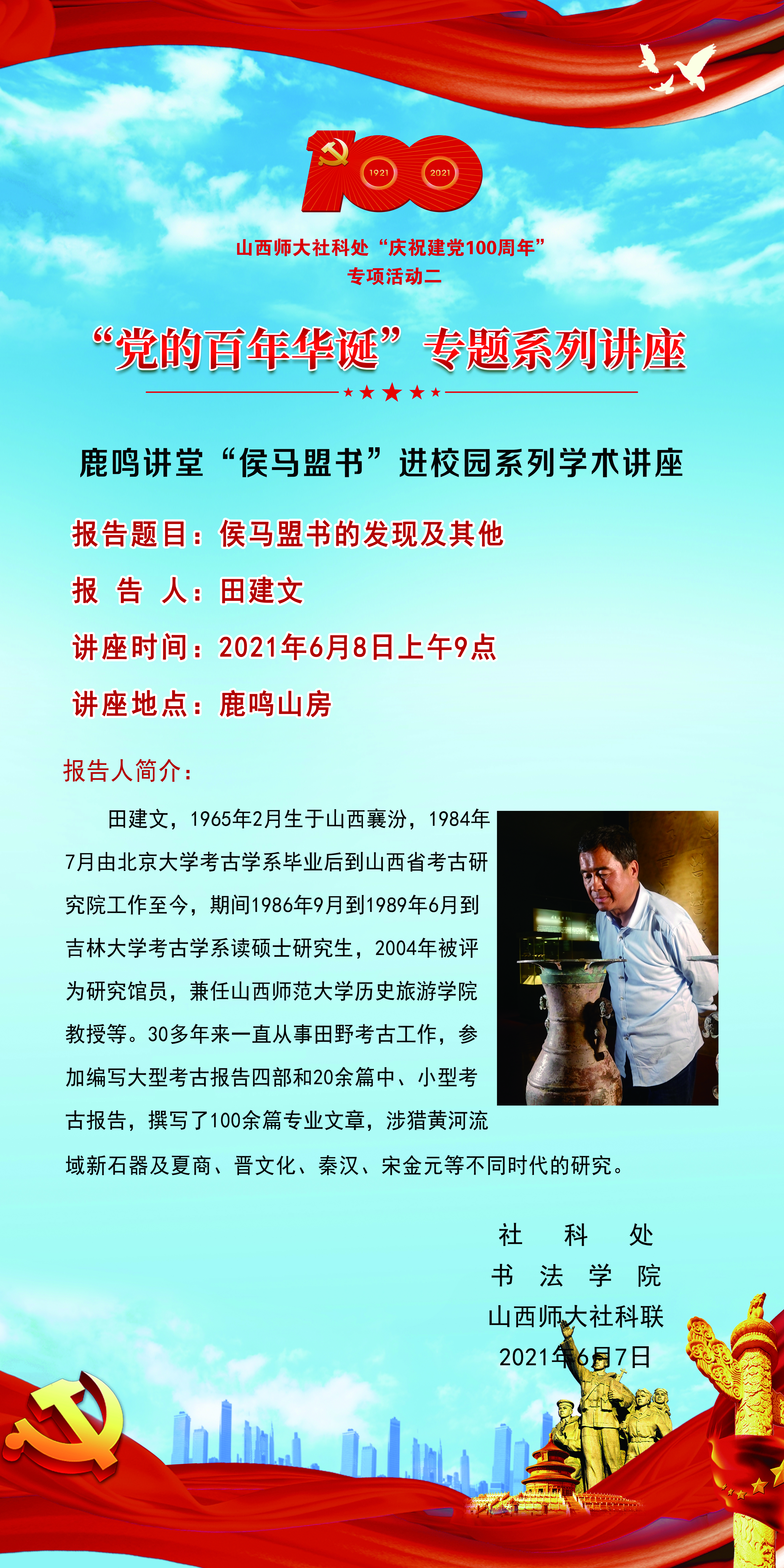 【预告】“党的百年华诞”专题系列讲座十一:侯马盟书的发现及其他