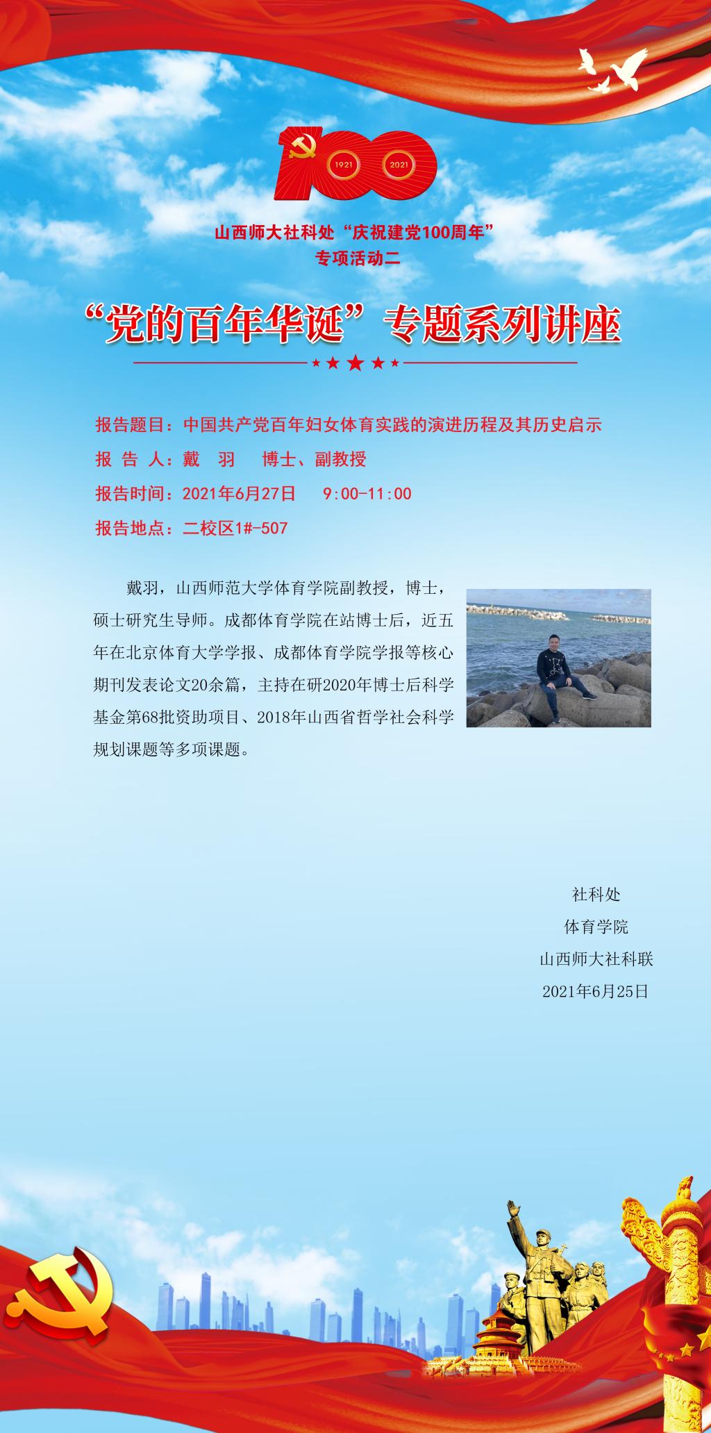 【预告】“党的百年华诞”专题系列讲座十五:中国共产党百年妇女体育实践的演进历程及其历史启示