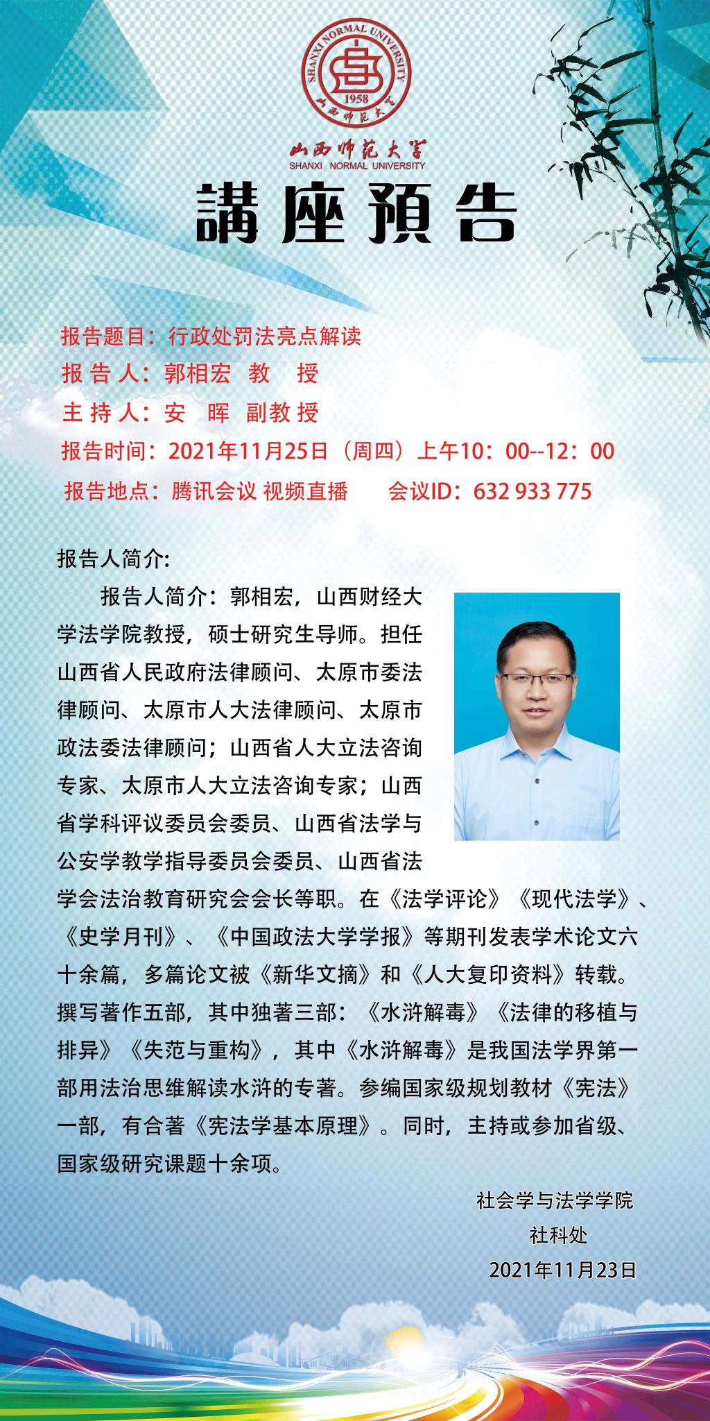 【预告】山西财经大学法学院郭相宏教授应社会学与法学学院邀请作线上学术报告