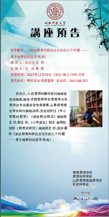 【预告】 人民教育出版社期刊编辑室苏丹兰主任应教师教育学院邀请作线上学术报告