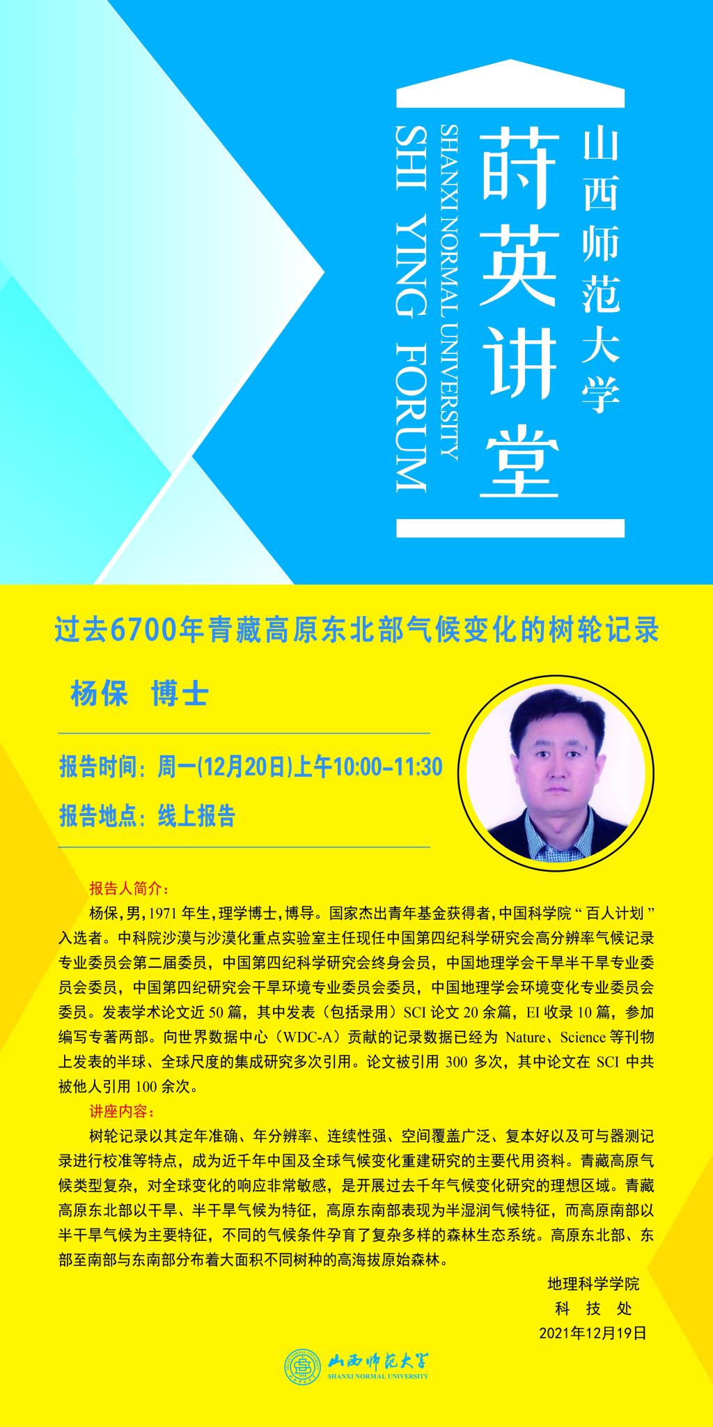 【预告】中国科学院杨保教授应永利官网邀请作学术报告