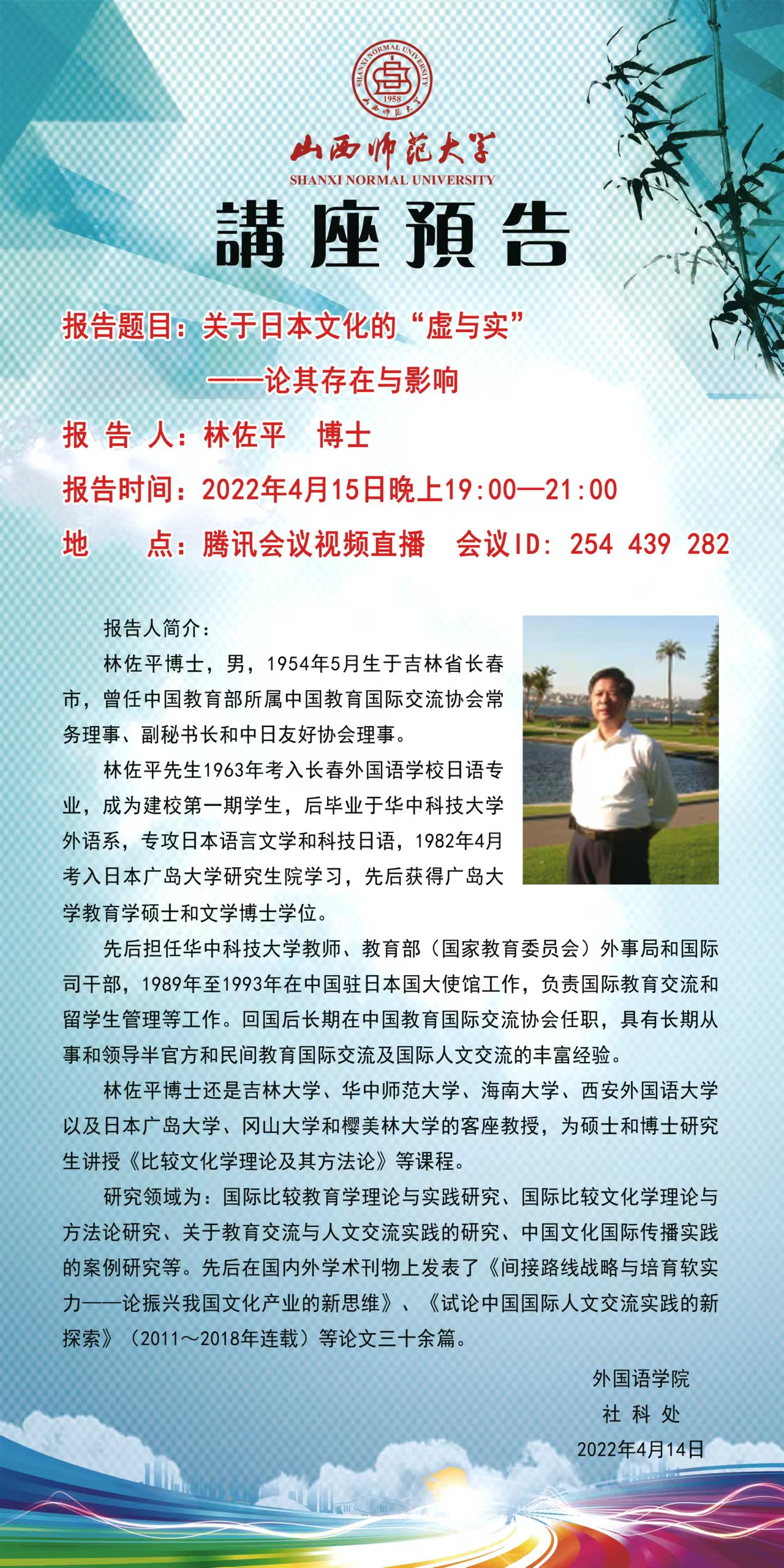 【预告】中国教育国际交流协会原常务理事林佐平博士应外国语学院邀请作线上学术报告