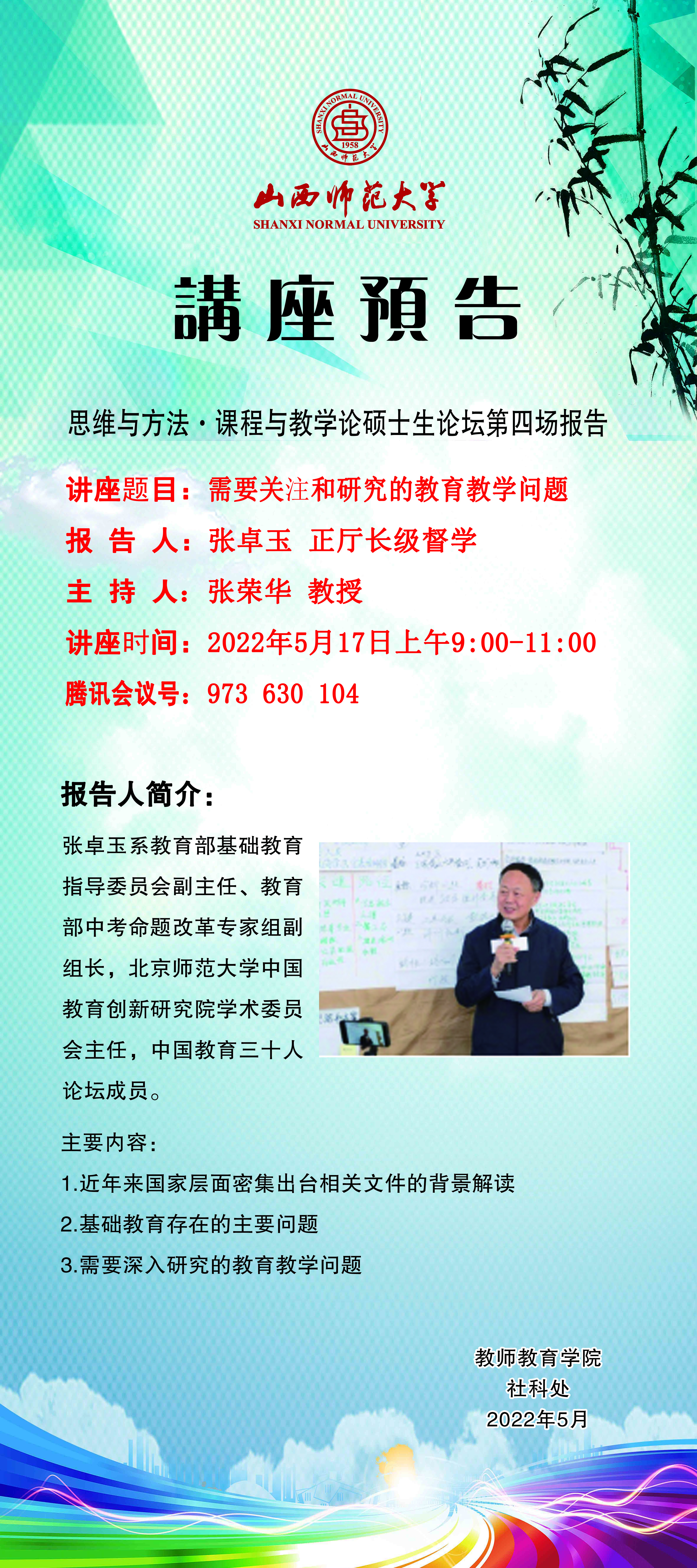 【预告】 张卓玉教授应教师教育学院邀请来永利官网作学术报告