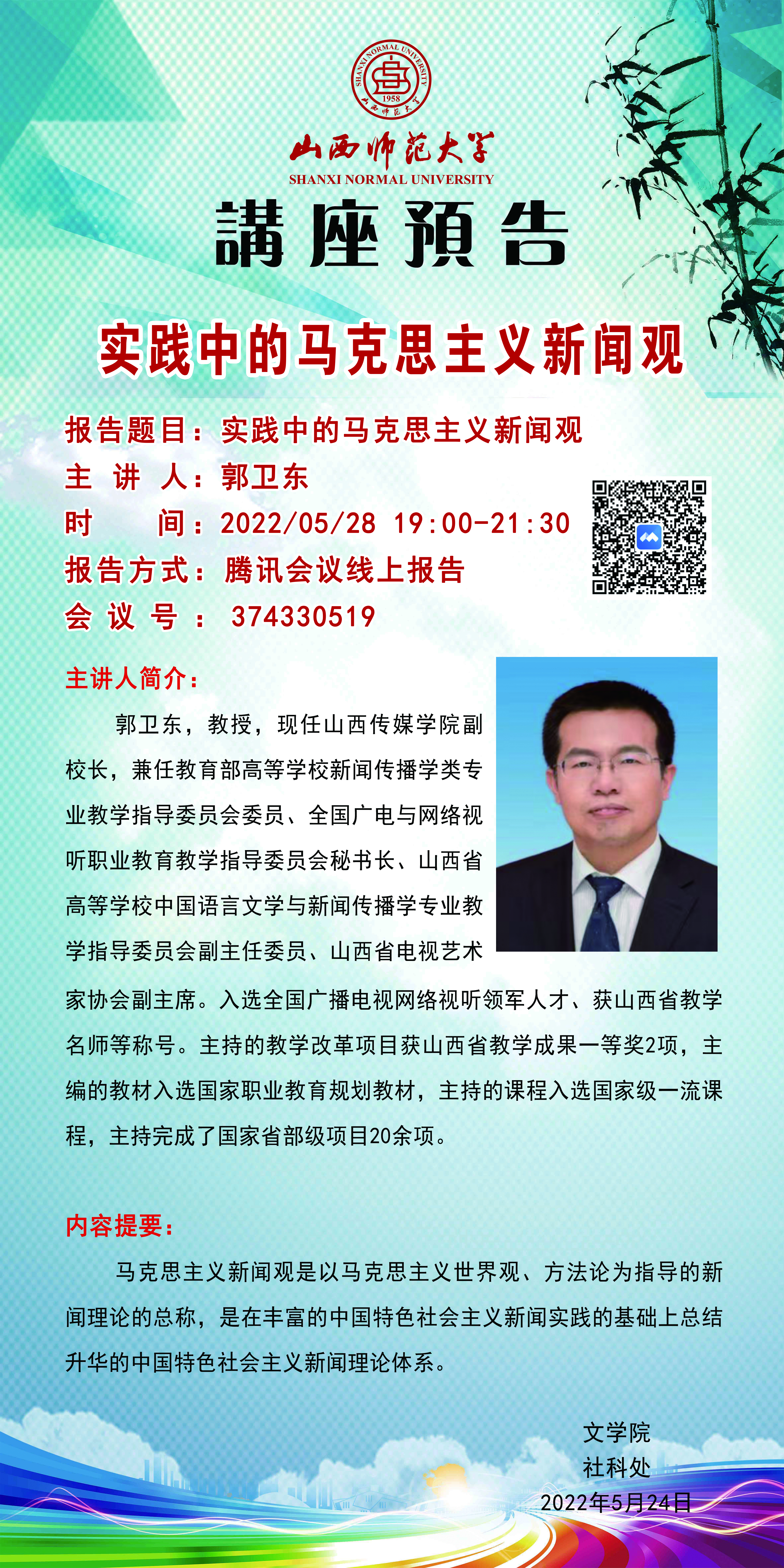 【预告】 山西传媒学院郭卫东教授应文学院邀请作线上学术报告