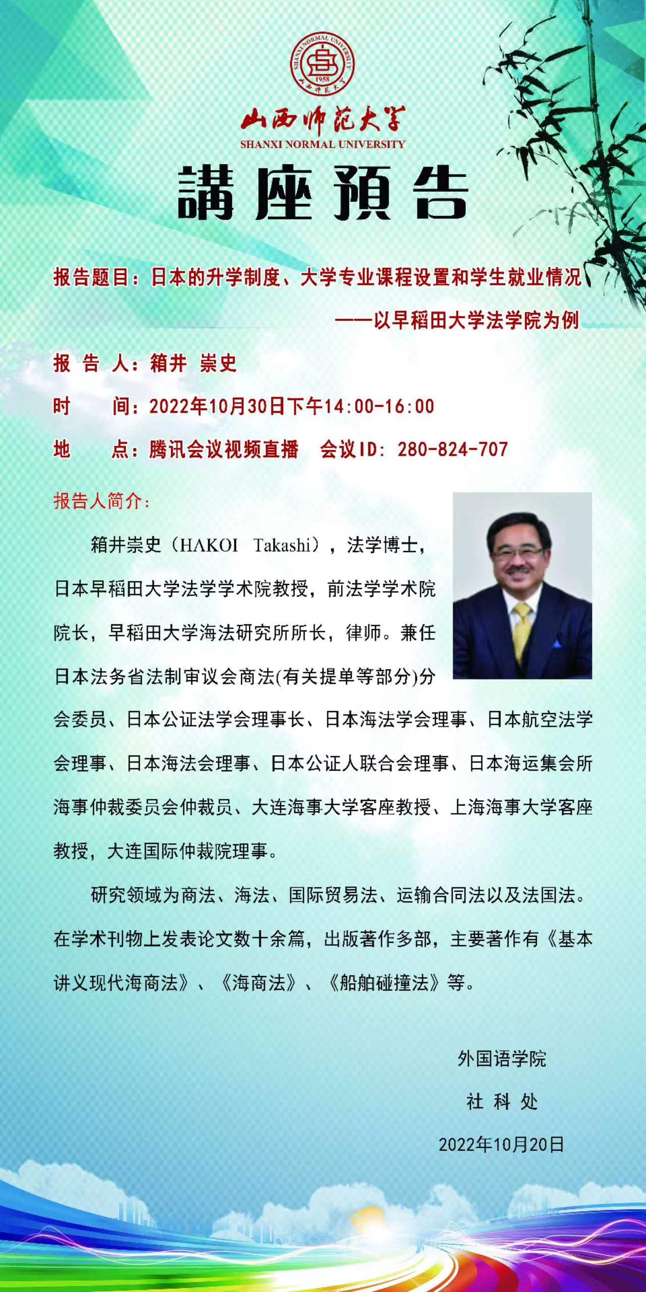 【预告】日本早稻田大学箱井崇史教授应永利官网邀请做线上学术报告