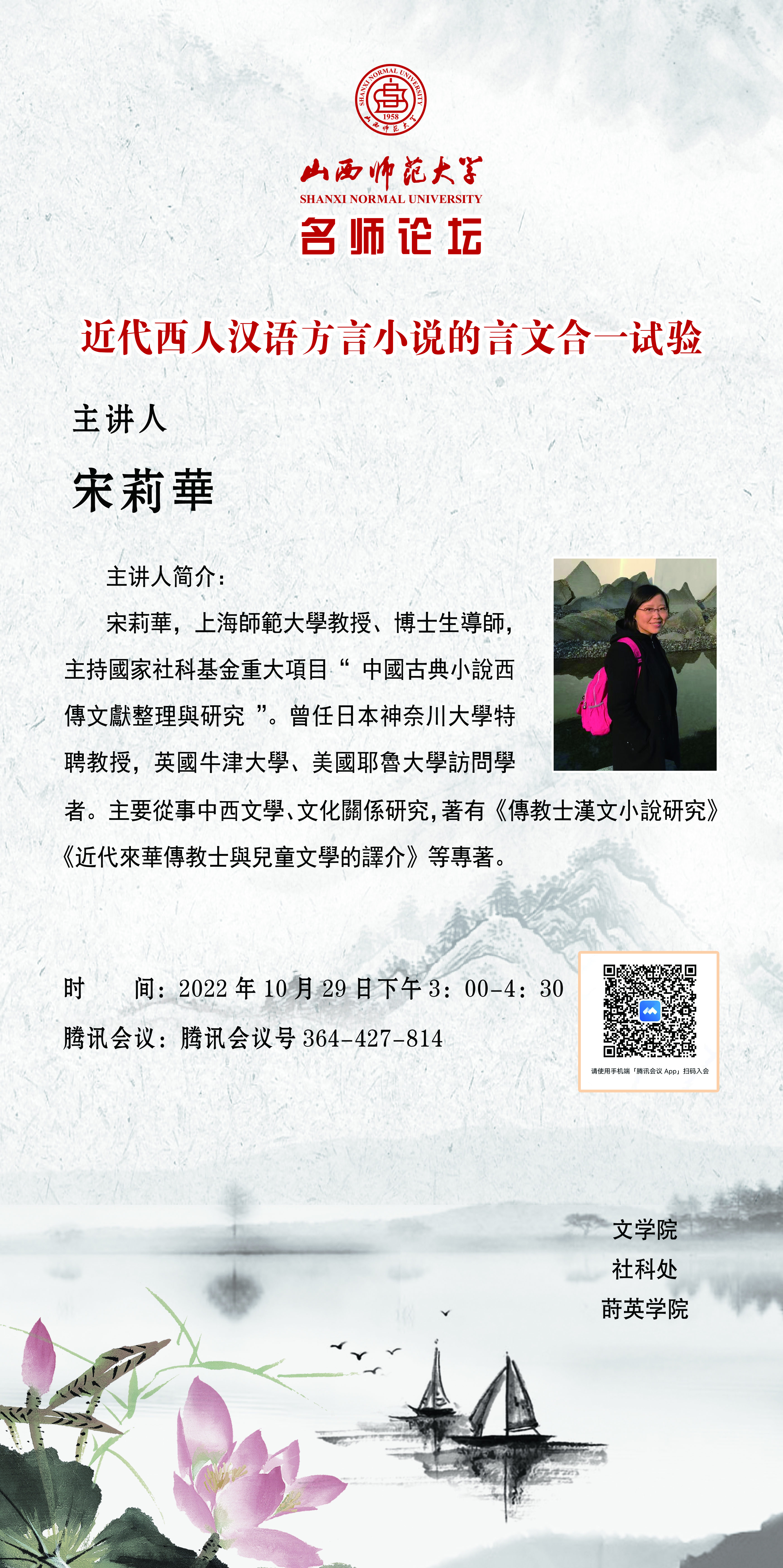 【预告】上海师范大学教授宋莉华应文学院邀请作学术报告