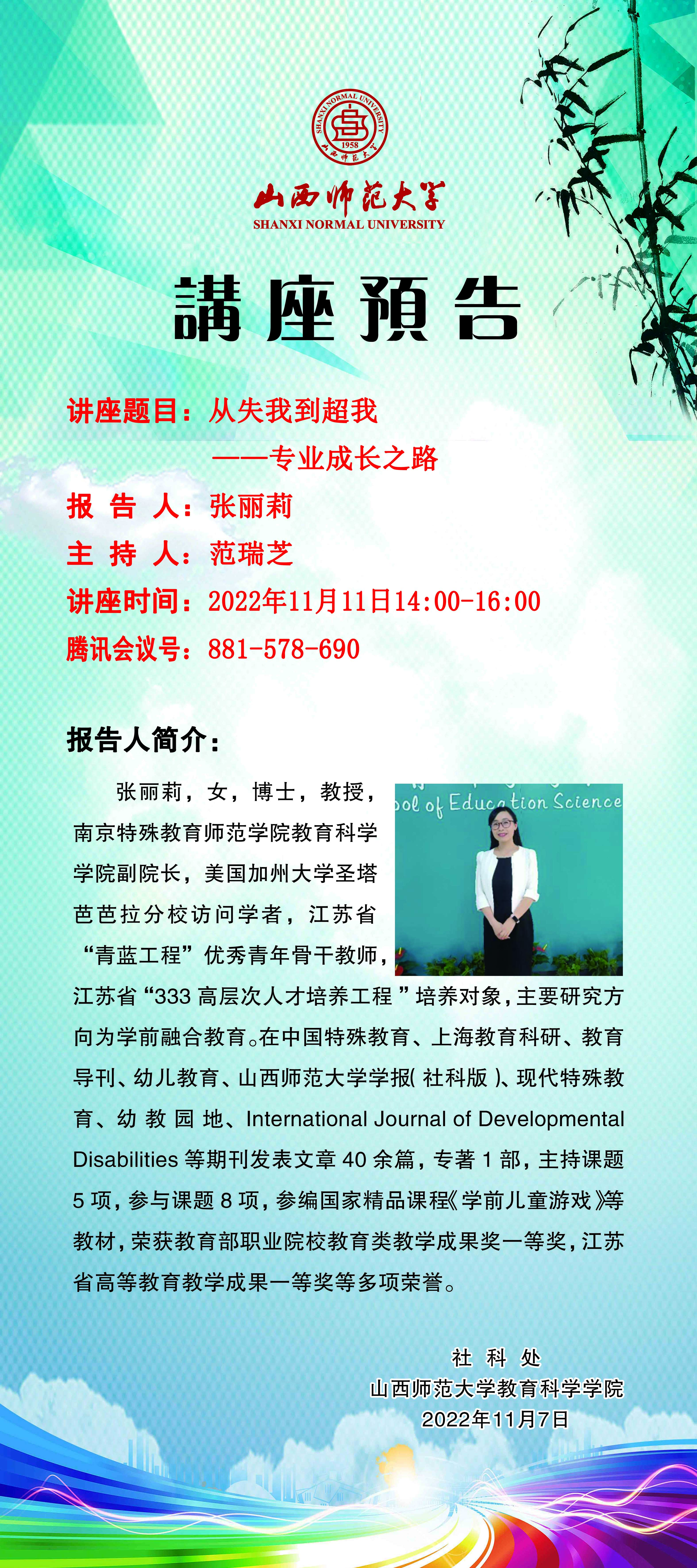【预告】南京特殊教育师范学院教授张丽莉应教育科学学院邀请作学术报告