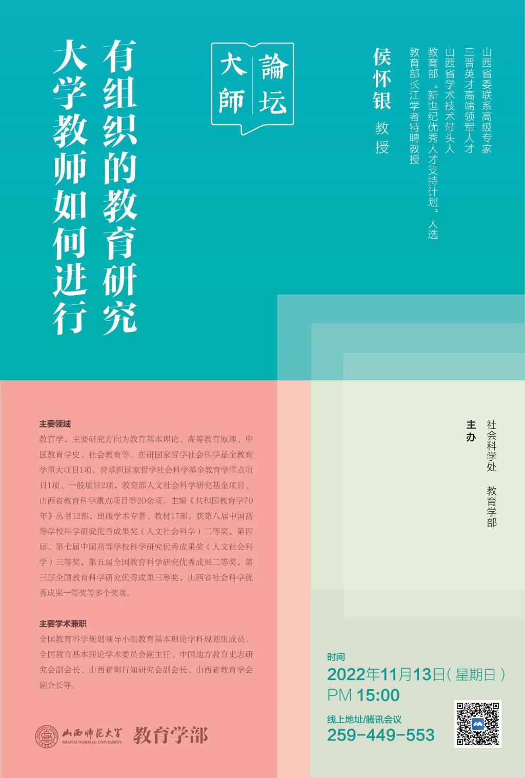 【大师论坛】侯怀银教授为永利官网教师作线上学术报告