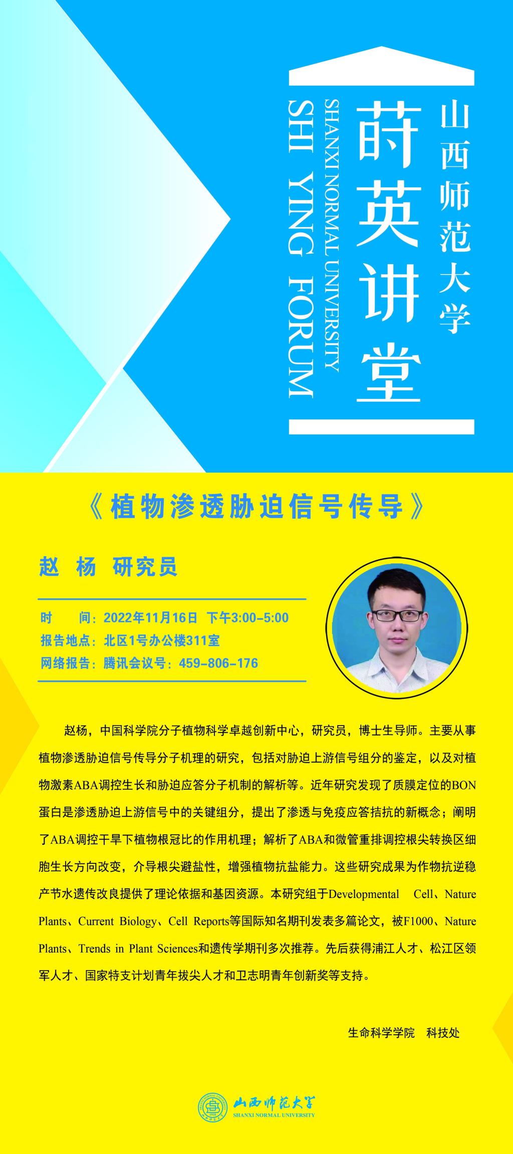 【预告】中国科学院赵杨研究员应永利官网邀请作学术报告