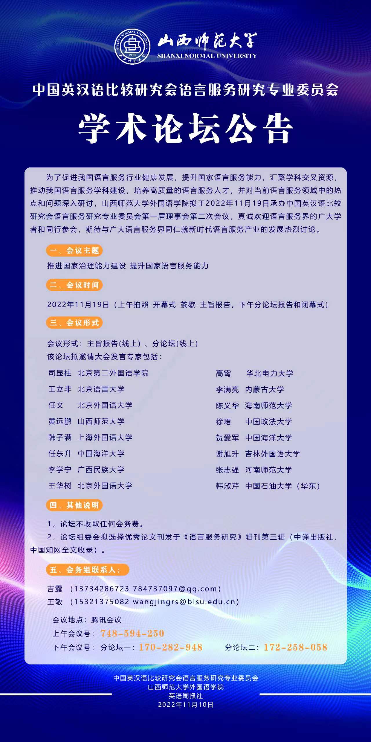 【会议预告】中国英汉语比较研究会语言服务研究专业委员会第一届理事会第二次会议