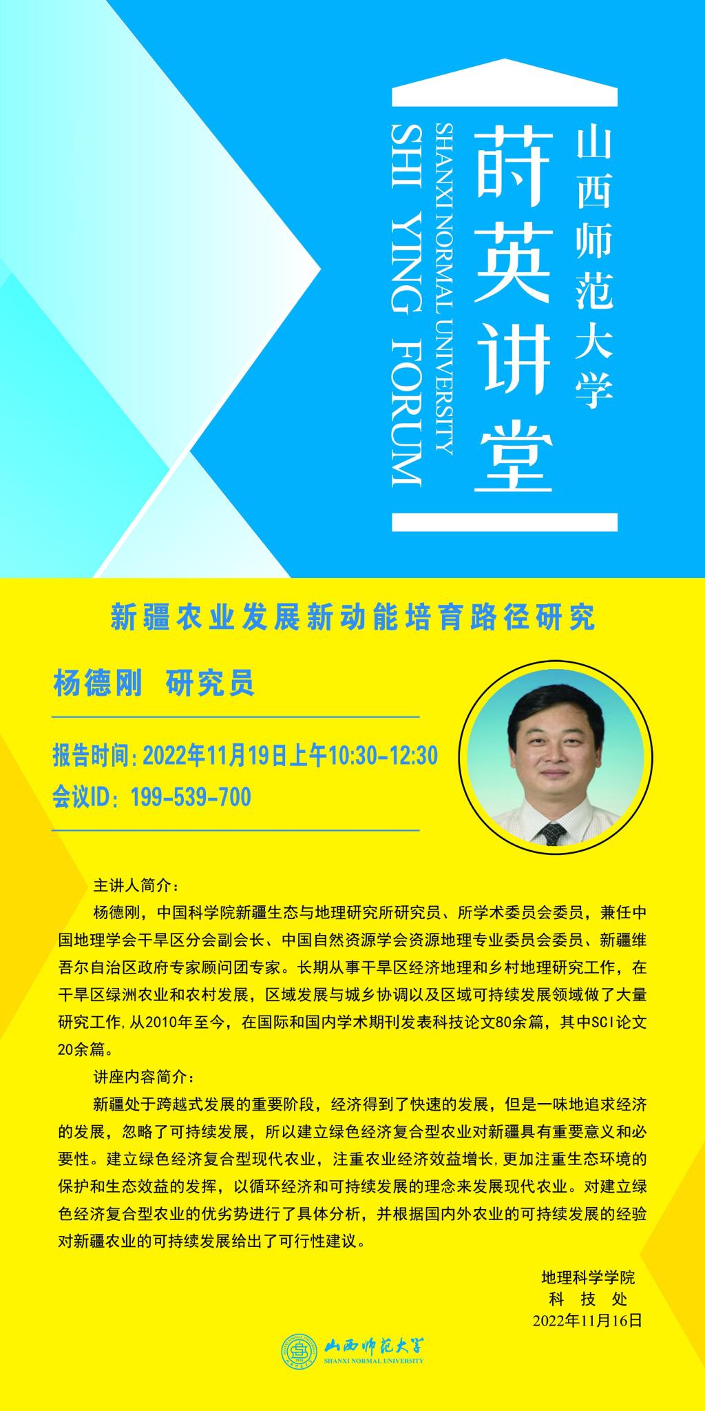【预告】中国科学院杨德刚研究员应永利官网邀请作学术报告
