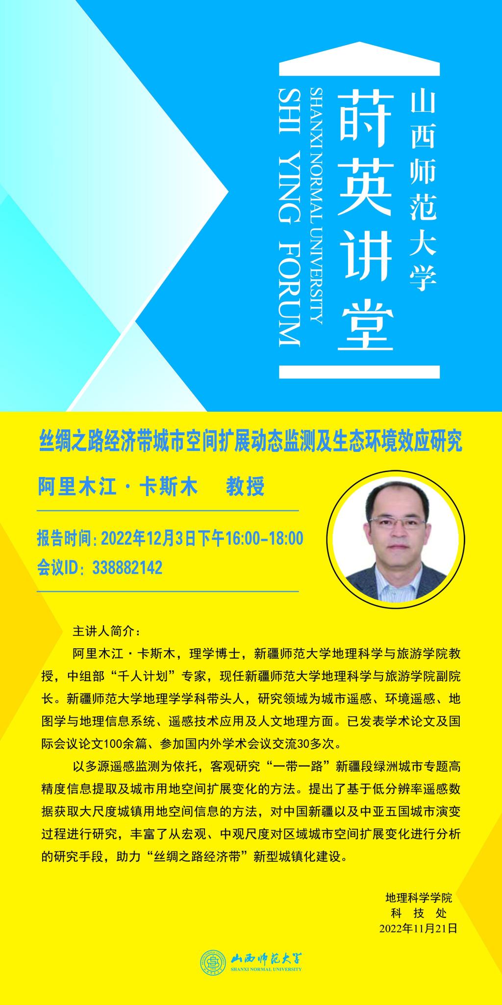 【预告】新疆师范大学阿里木江·卡斯木教授应永利官网邀请做学术报告