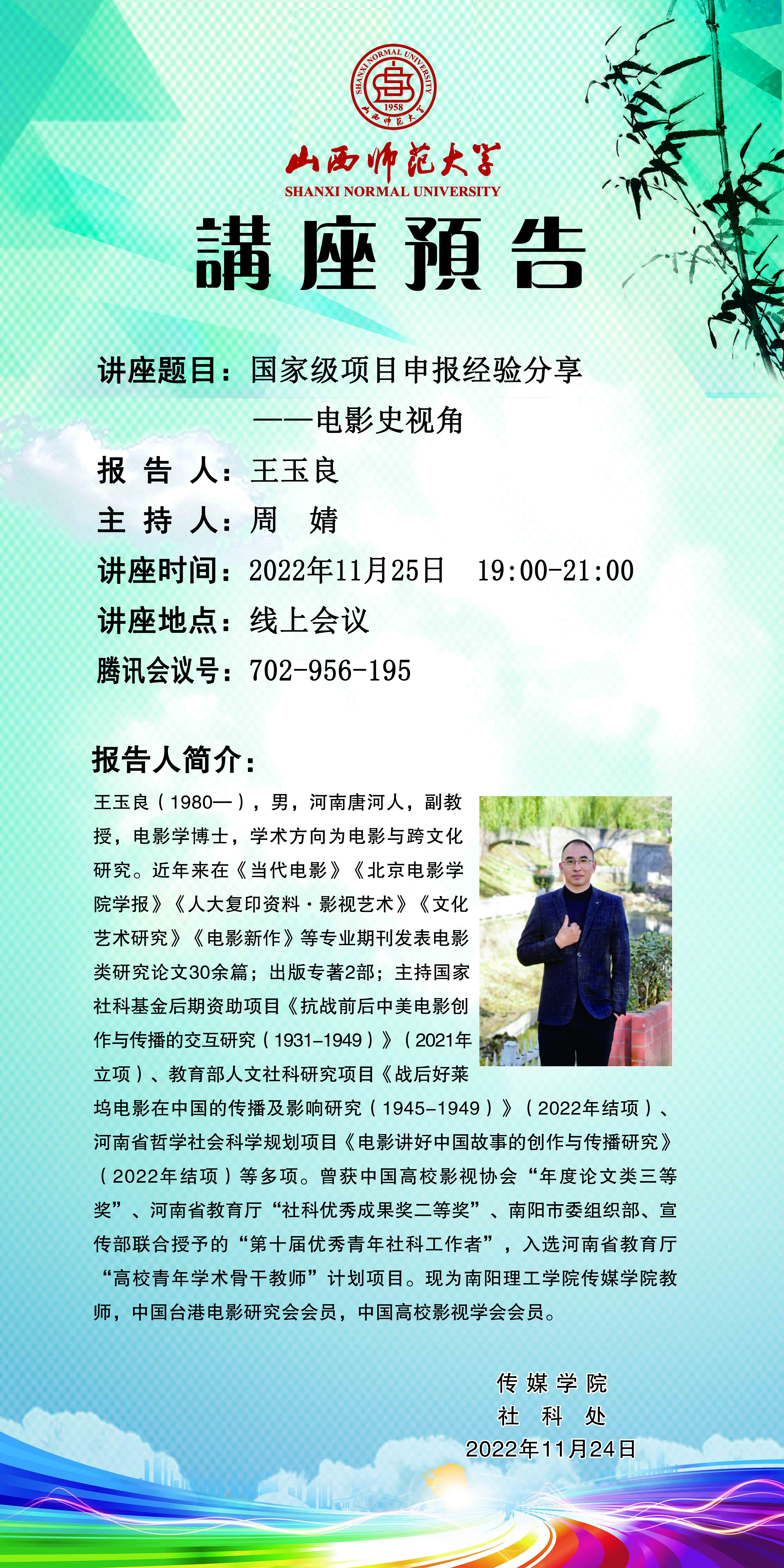 【预告】南阳理工学院副教授王玉良应永利官网传媒学院邀请作线上学术报告