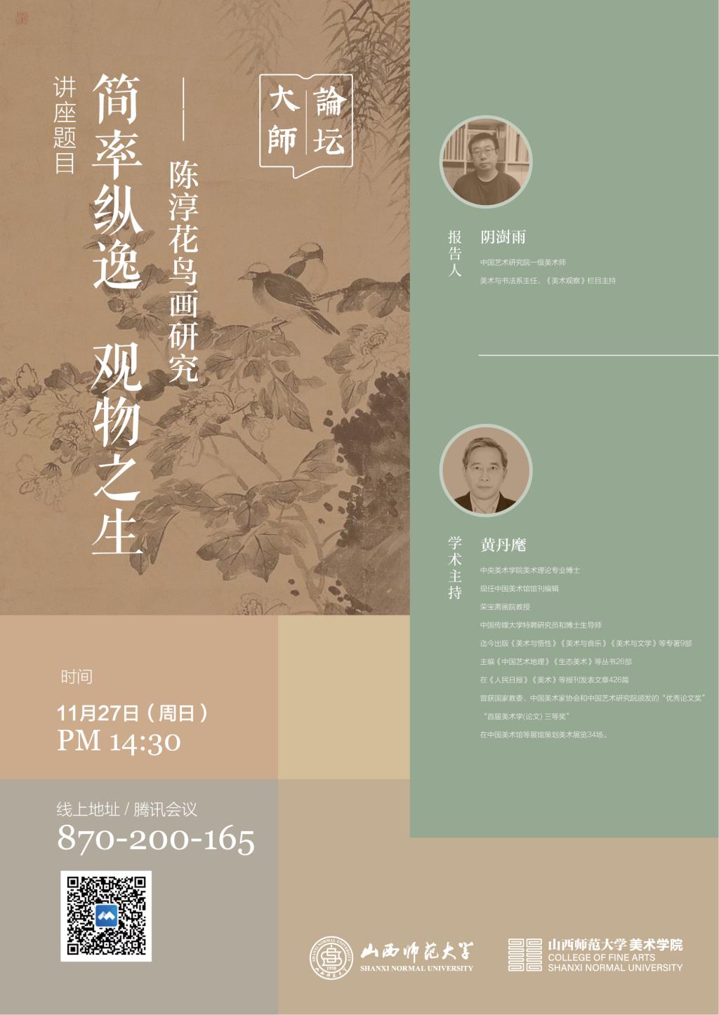 【预告】中国艺术研究院一级美术师阴澍雨应永利官网美术学院邀请作线上学术报告
