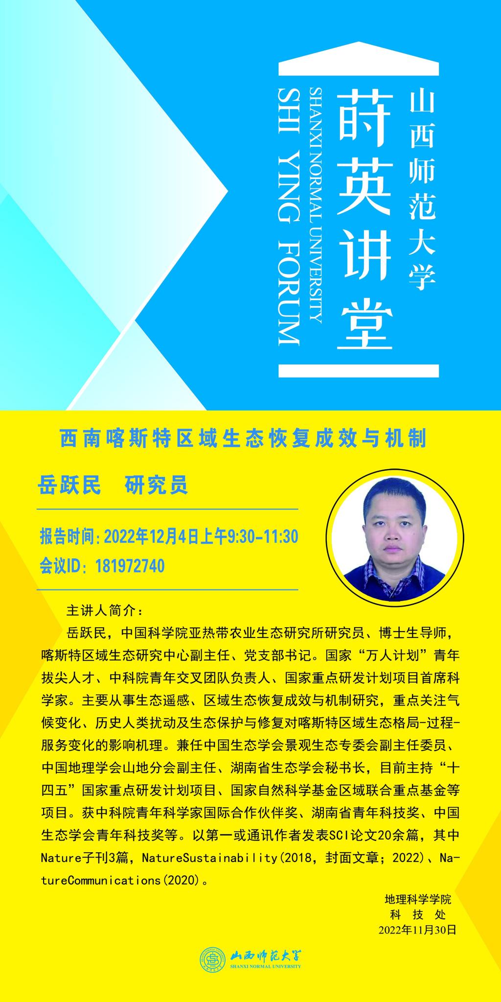 【预告】中国科学院岳跃民研究员应永利官网邀请作学术报告