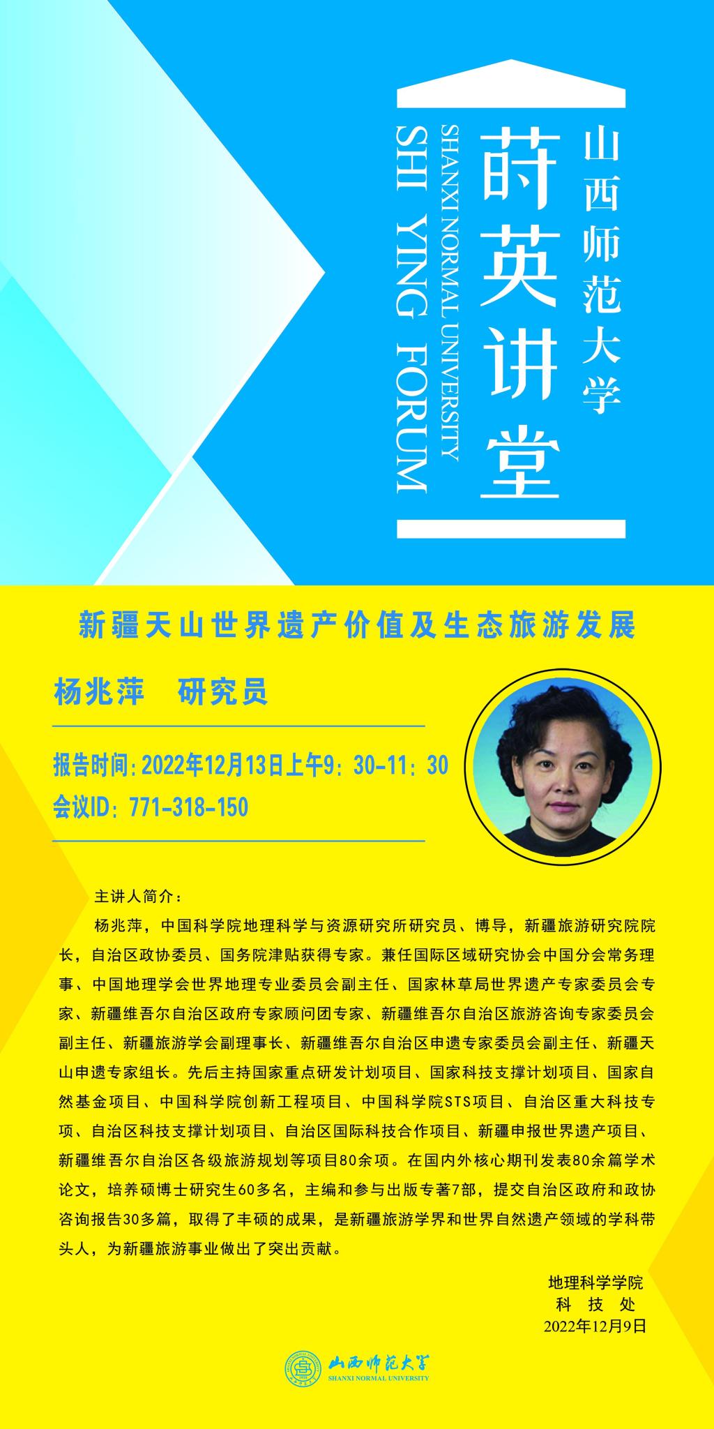 【预告】中国科学院杨兆萍研究员应永利官网邀请作学术报告