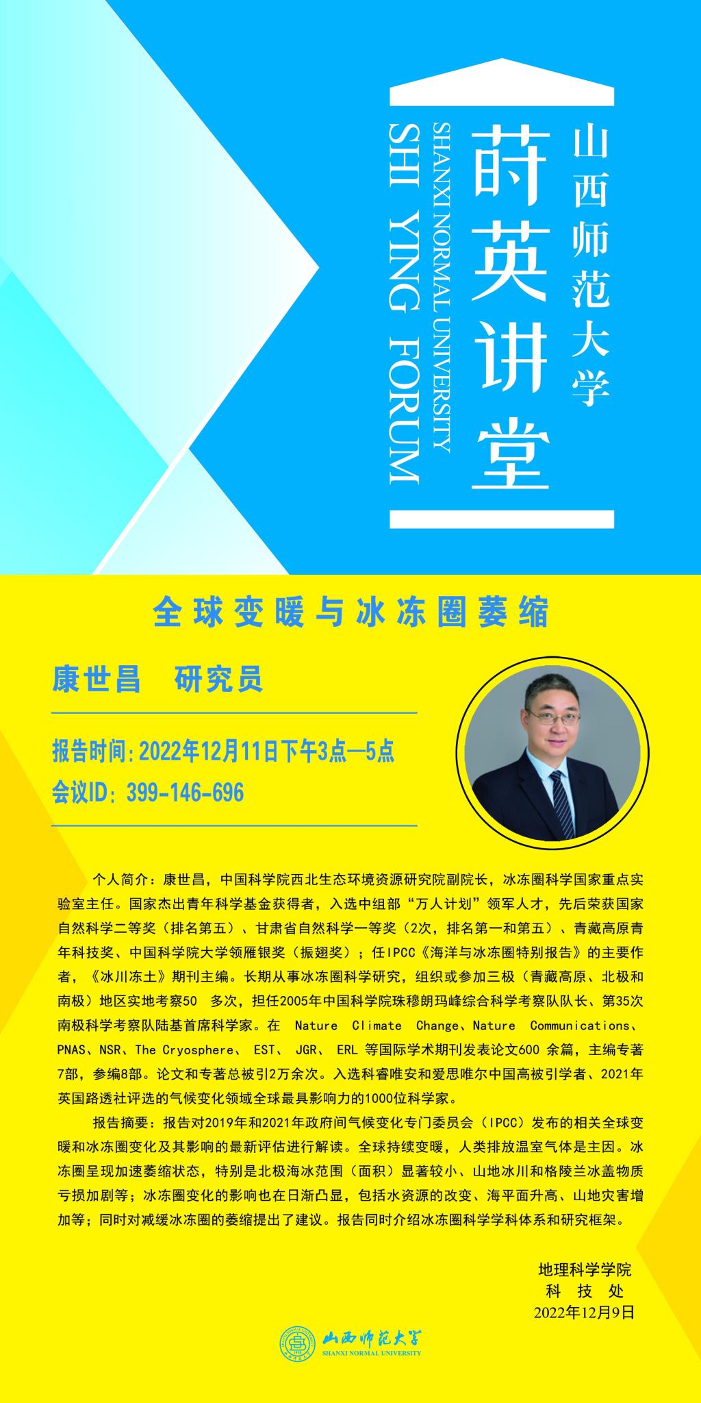 【预告】中国科学院康世昌研究员应永利官网邀请作学术报告