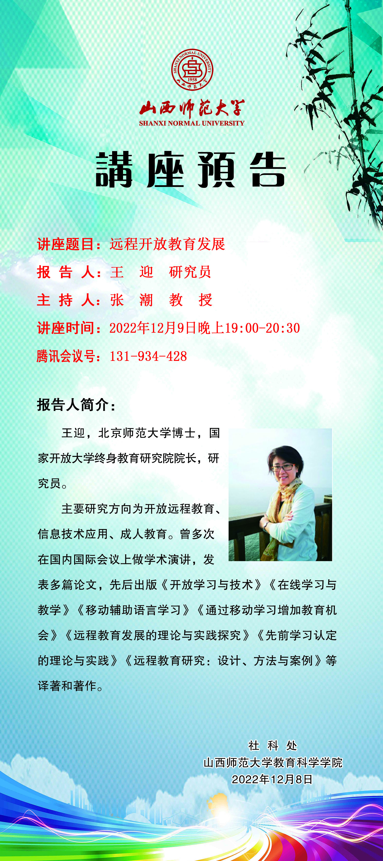【预告】北京师范大学研究员王迎应永利官网教育科学学院邀请作线上学术报告