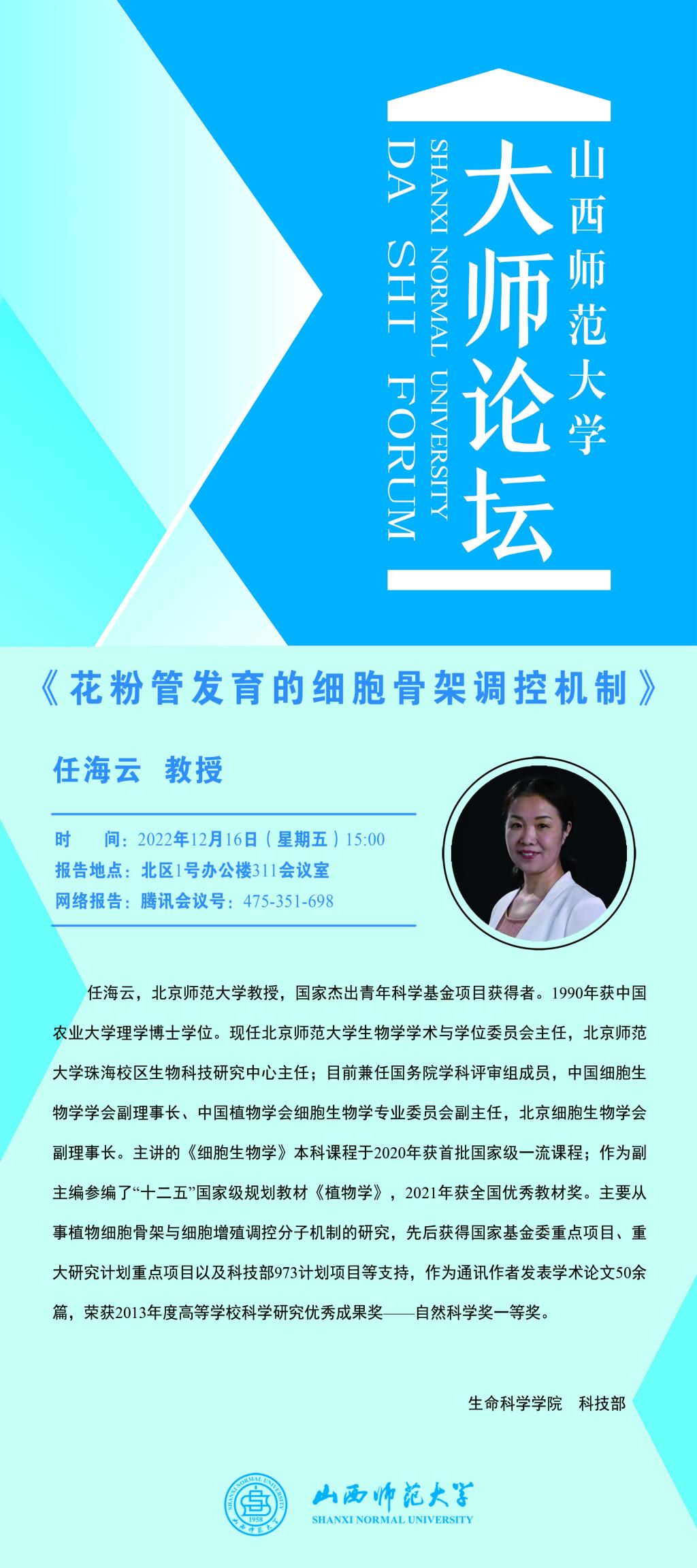 【大师论坛】北京师范大学任海云教授应永利官网邀请作学术报告