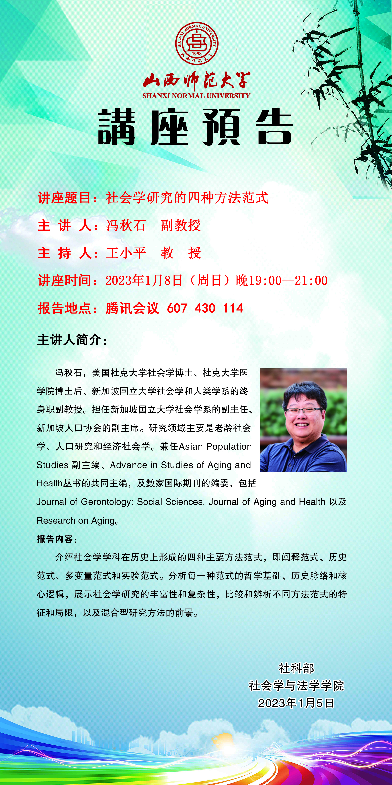 新加坡国立大学副教授冯秋石应永利官网社会学与法学学院邀请作线上学术报告