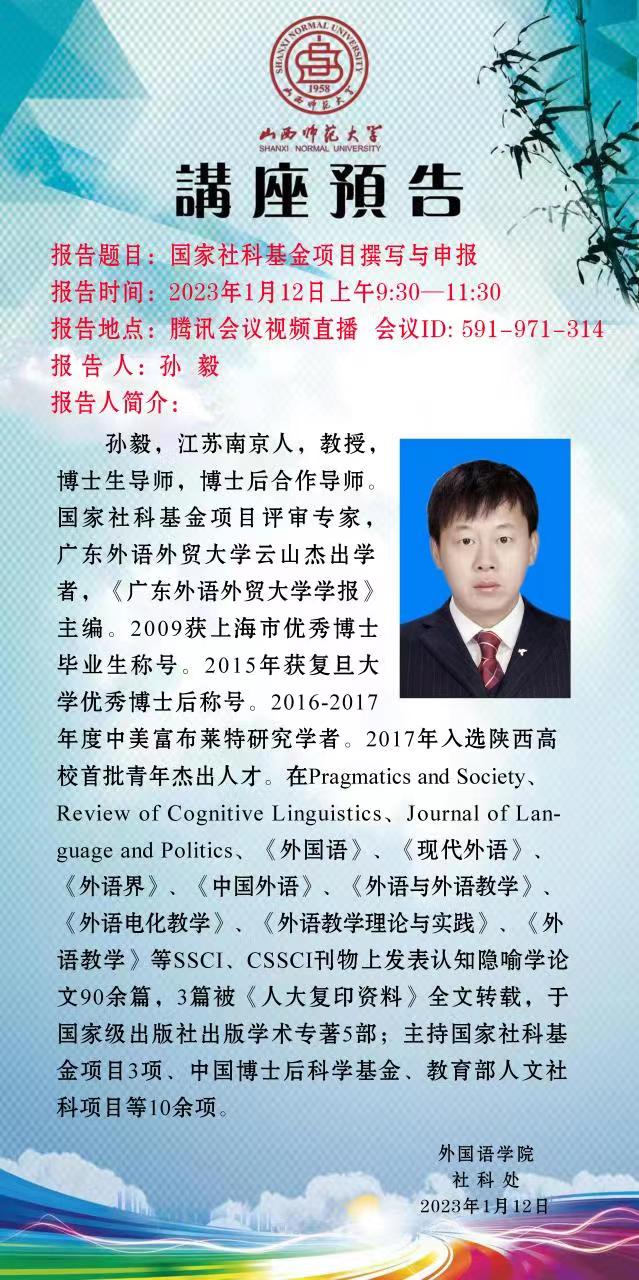 【预告】广东外语外贸大学教授孙毅应永利官网外国语学院邀请作线上学术报告