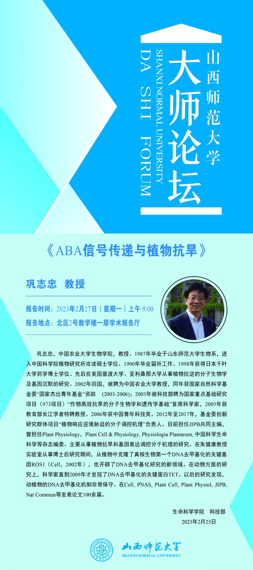【大师论坛】中国农业大学巩志忠教授应永利官网邀请作学术报告
