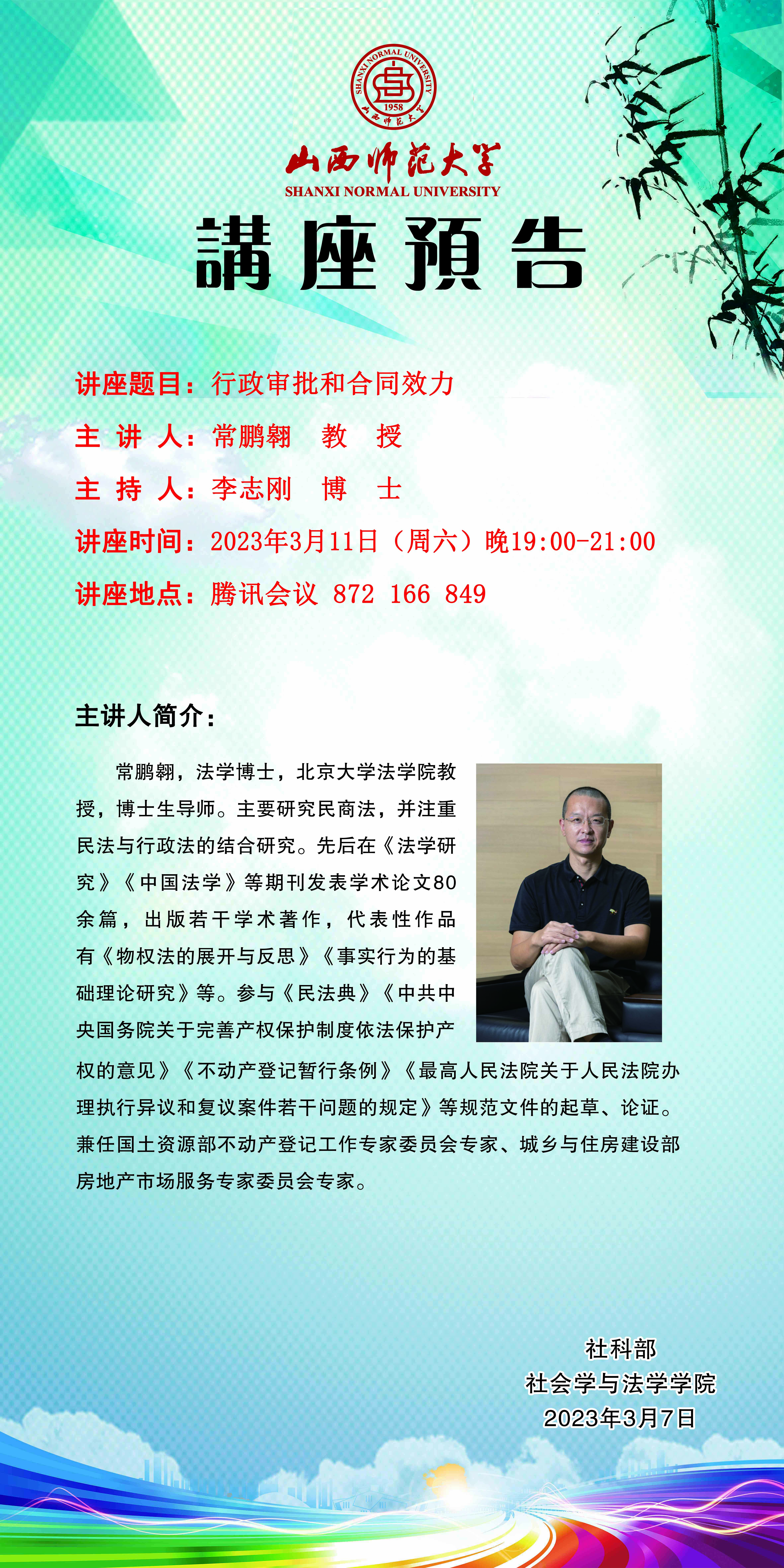 【预告】北京大学法学院教授常鹏翱应永利官网社会学与法学学院邀请作线上学术报告