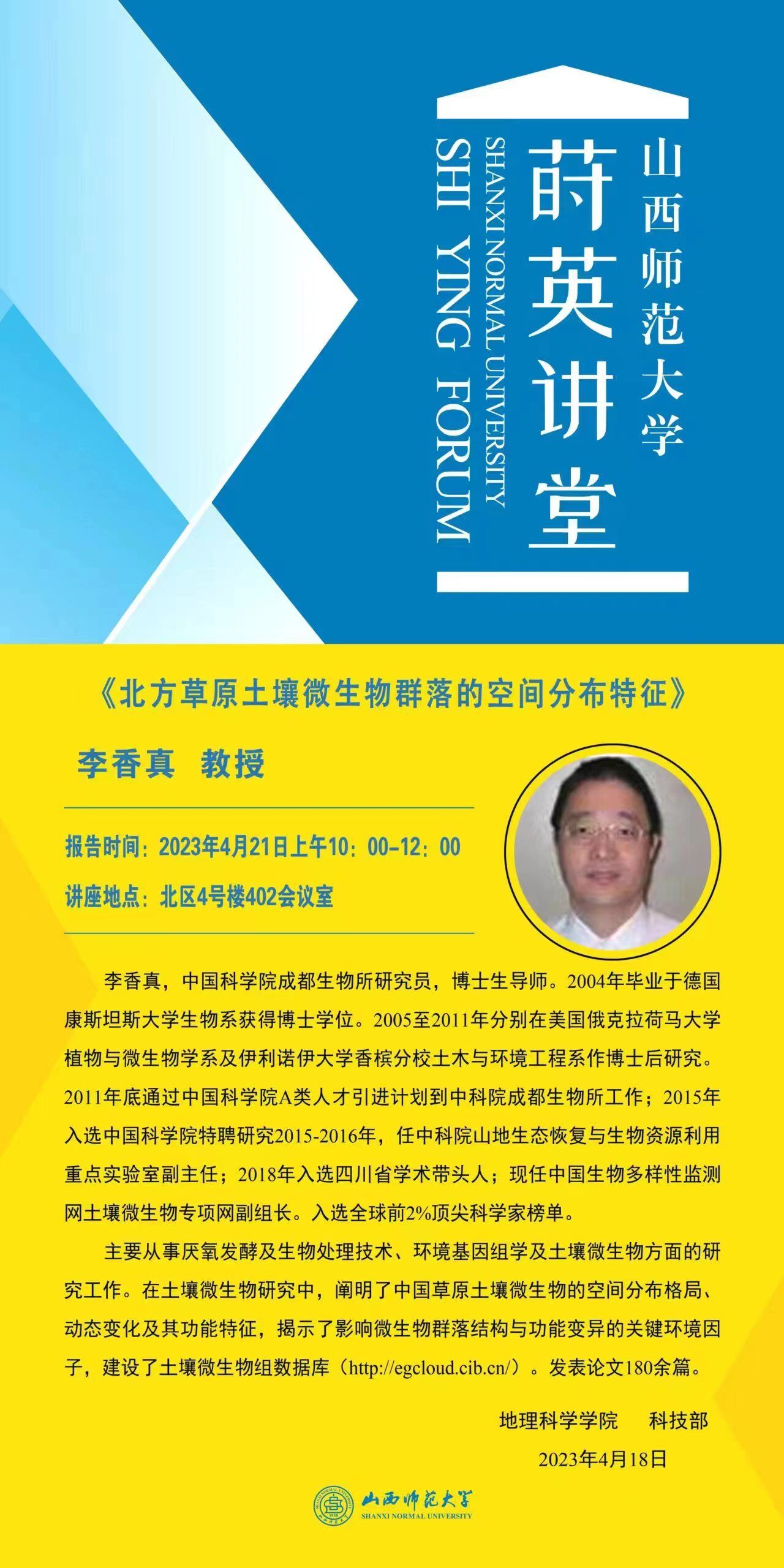 【预告】中国科学院成都生物所李香真研究员应永利官网邀请作学术报告