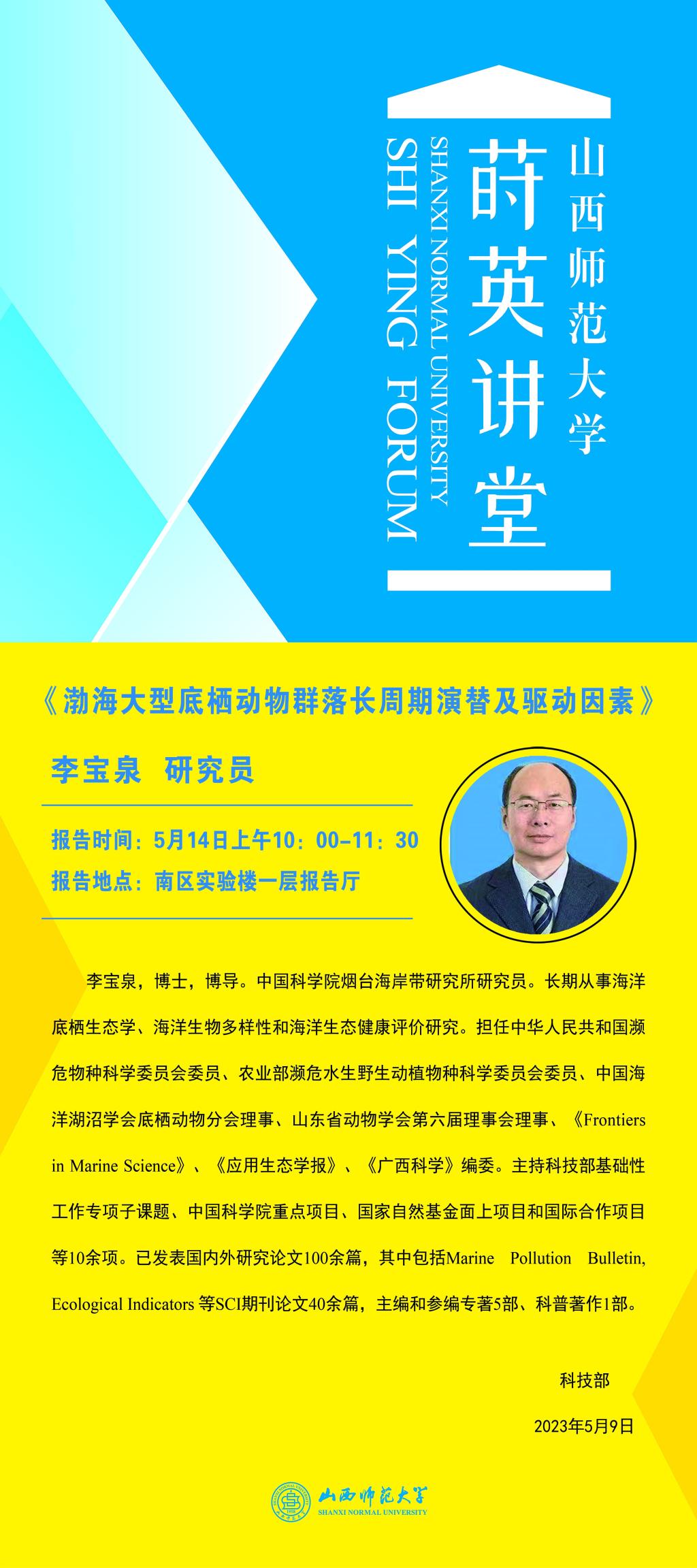 【预告】中国科学院烟台海岸带研究所李宝泉研究员应永利官网邀请作学术报告