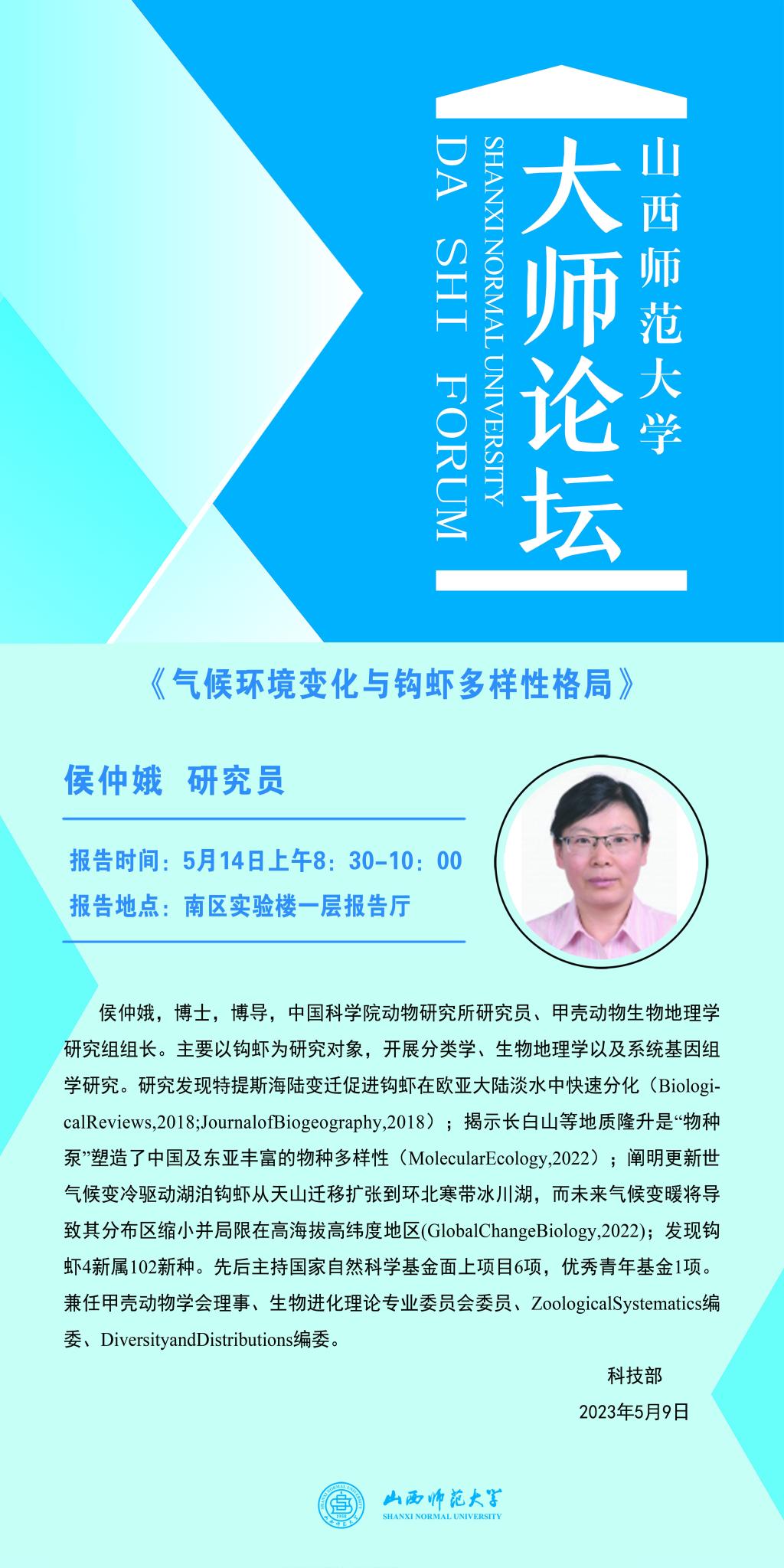 【大师论坛】中国科学院动物研究所侯仲娥研究员应永利官网邀请作学术报告