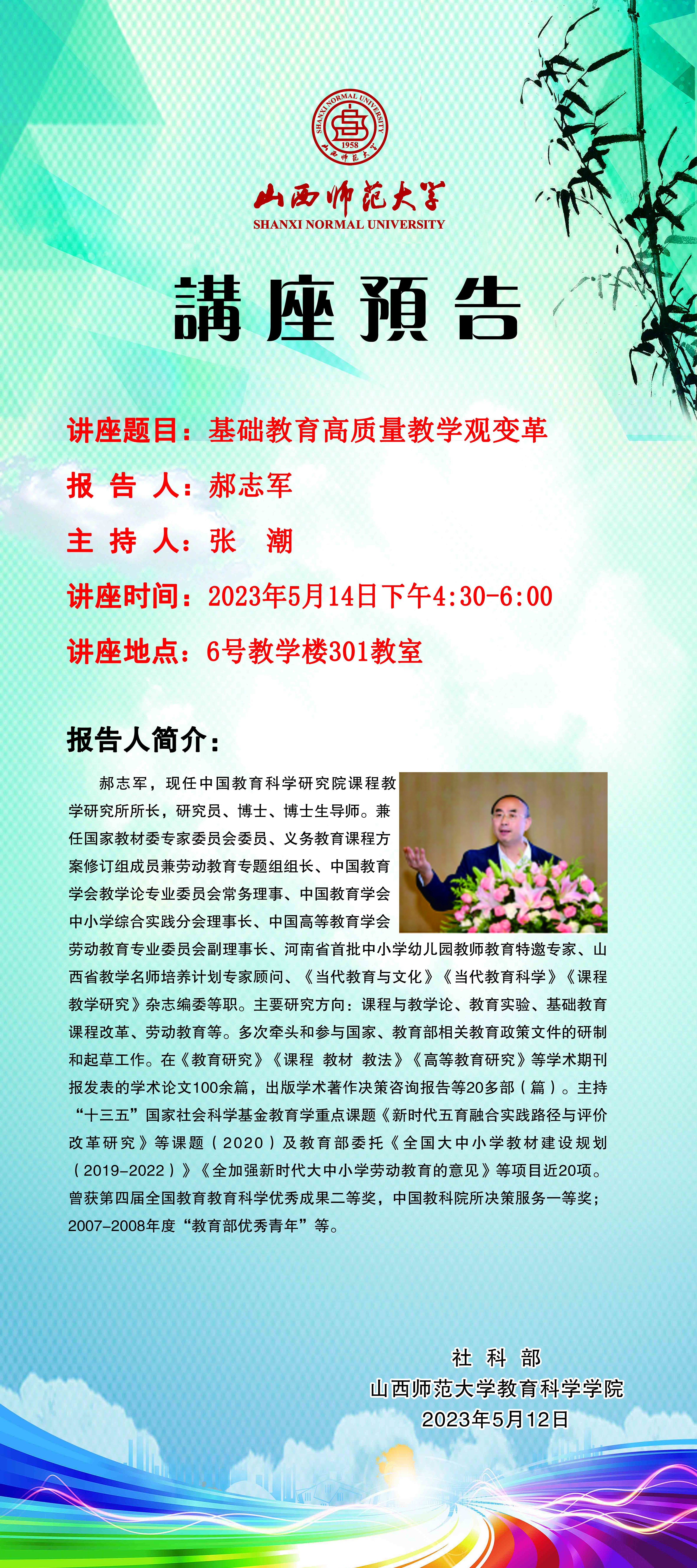 【预告】中国教育科学研究院课程教学研究所所长郝志军应教育科学学院邀请作学术报告