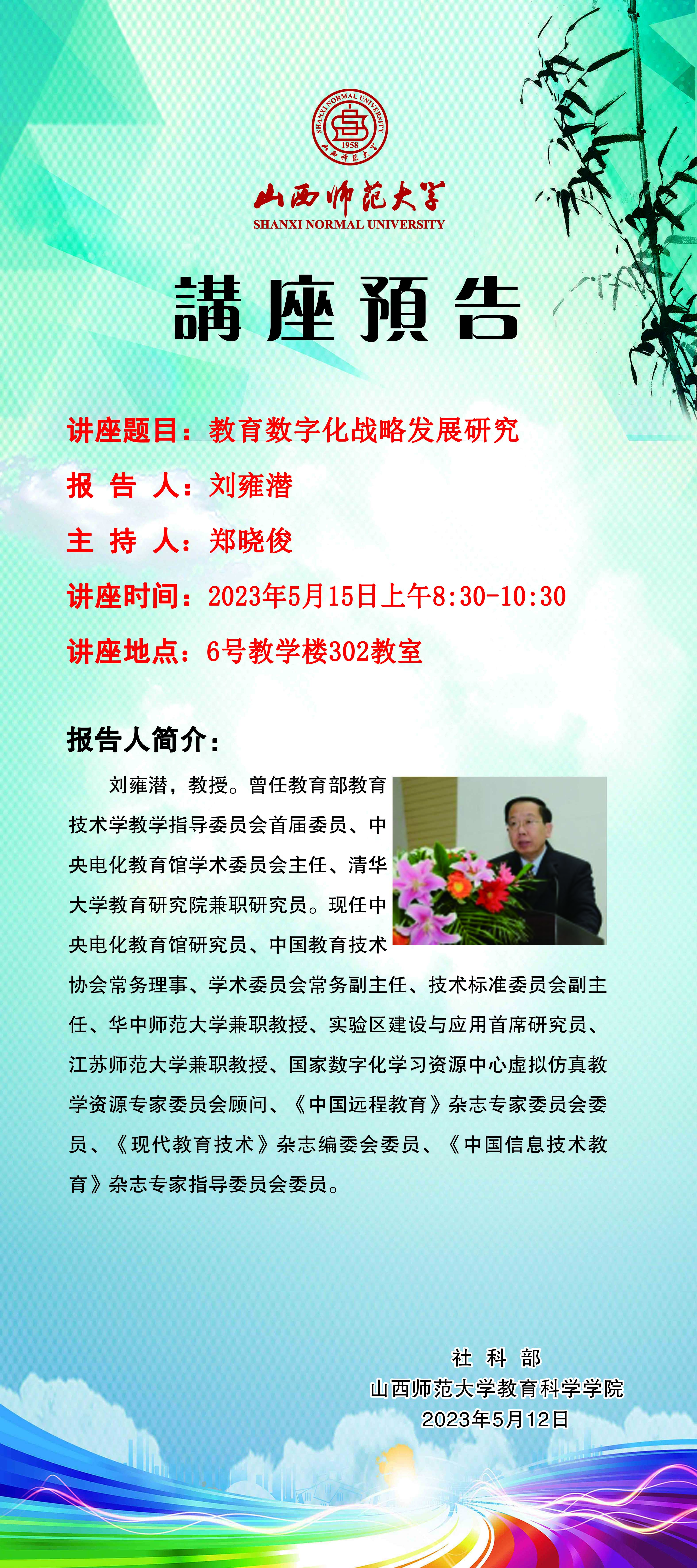 【预告】中央电化教育馆研究员刘雍潜应教育科学学院邀请作学术报告