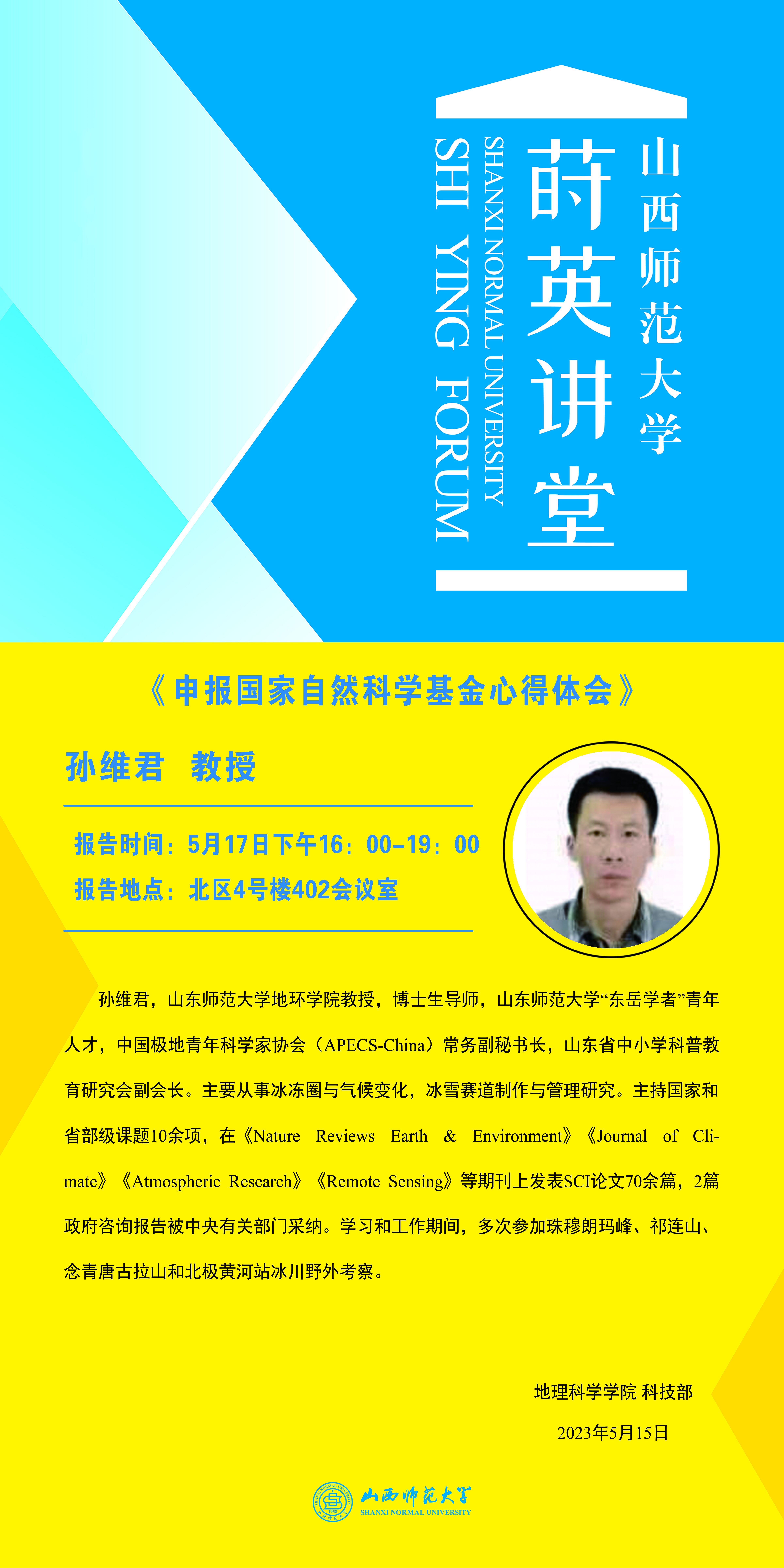 【预告】山东师范大学孙维君教授应永利官网邀请作学术报告