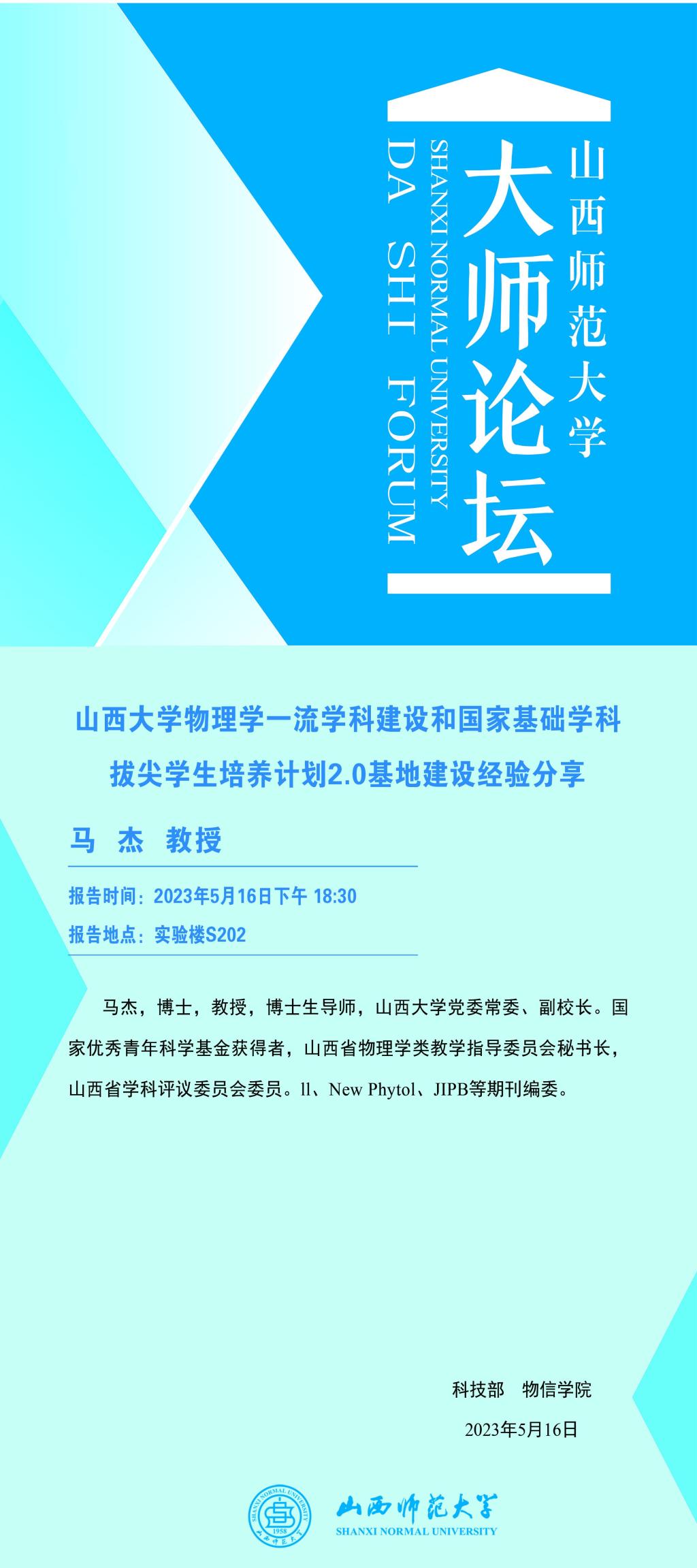 【大师论坛】山西大学马杰教授应永利官网邀请作学术报告