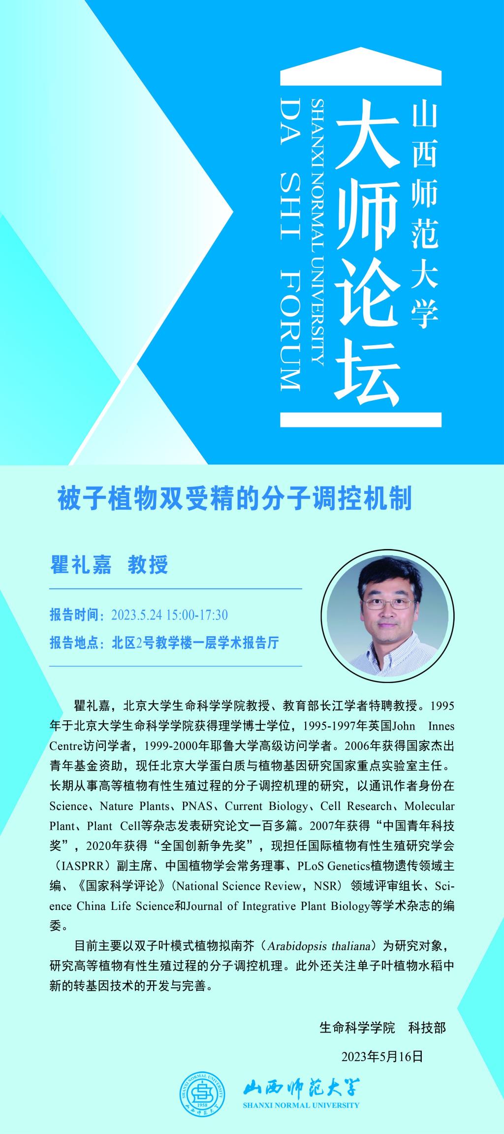 【大师论坛】北京大学瞿礼嘉教授应永利官网邀请作学术报告