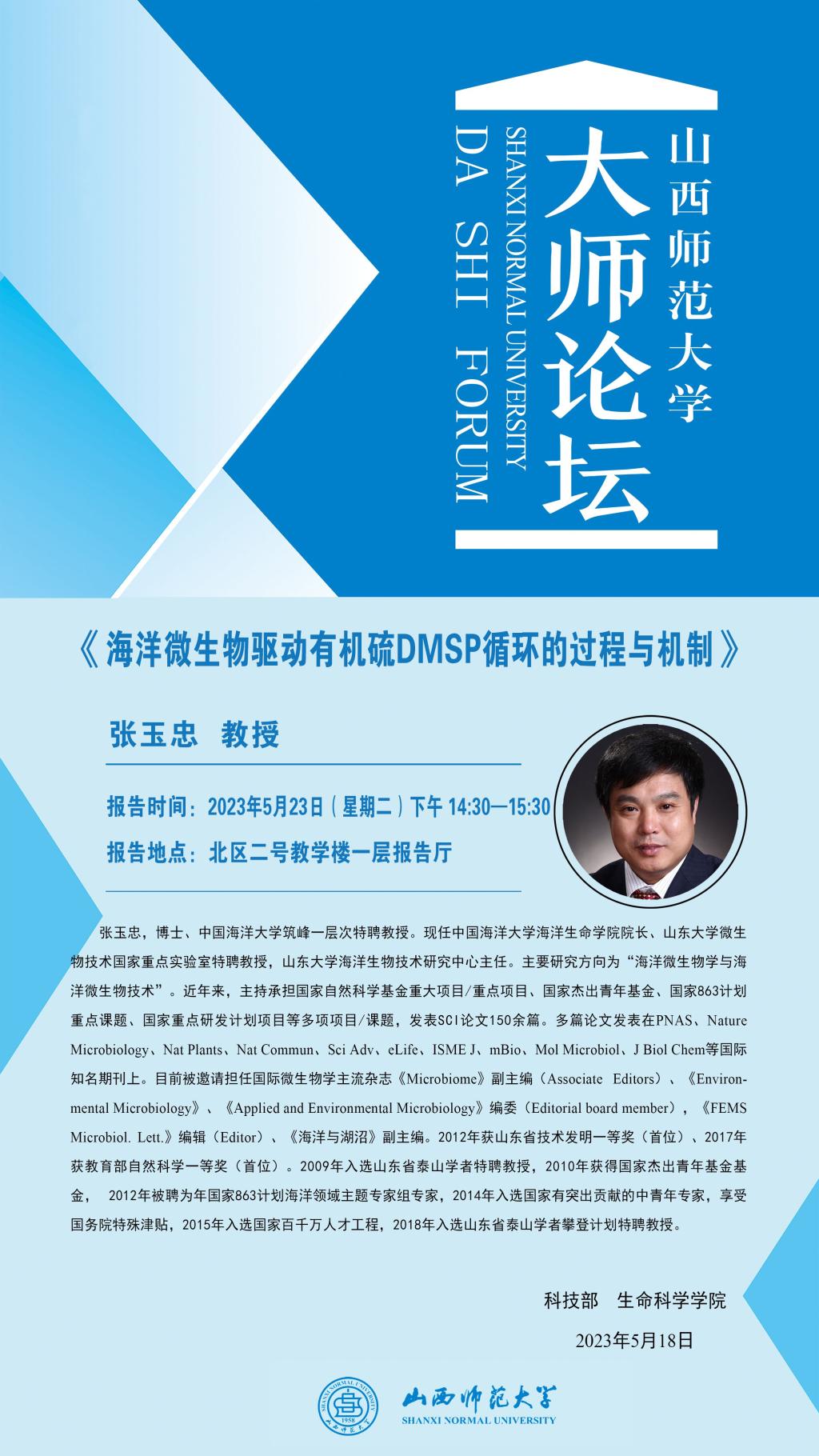 【大师论坛】中国海洋大学张玉忠教授应永利官网邀请作学术报告