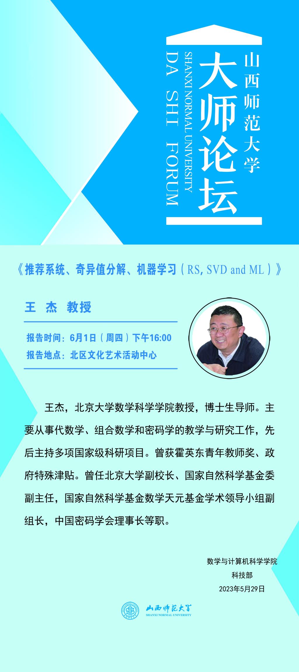 【大师论坛】北京大学王杰教授应永利官网邀请作学术报告
