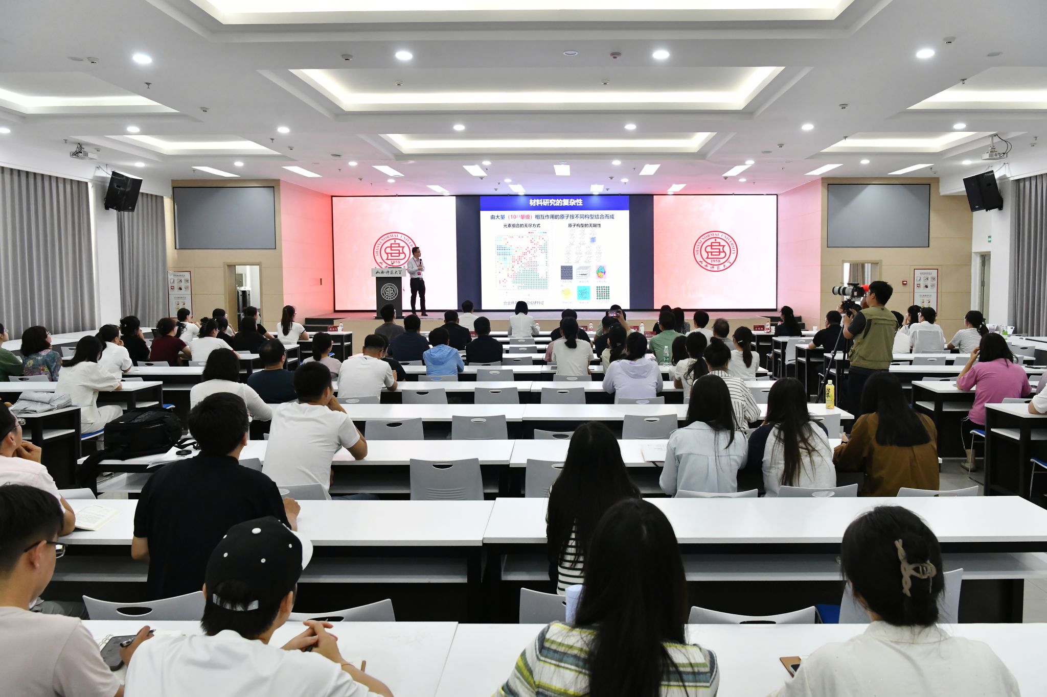段文晖在题为《材料计算与材料设计》的报告中,围绕“材料、计算和物理”“第一性原理材料计算”“人工智能材料计算”“总结与展望”等四个方面进行了阐述,同时以具体实例对DeepH软件进行了详细介绍。报告生动直观、理实并存,现场师生表示受益匪浅。