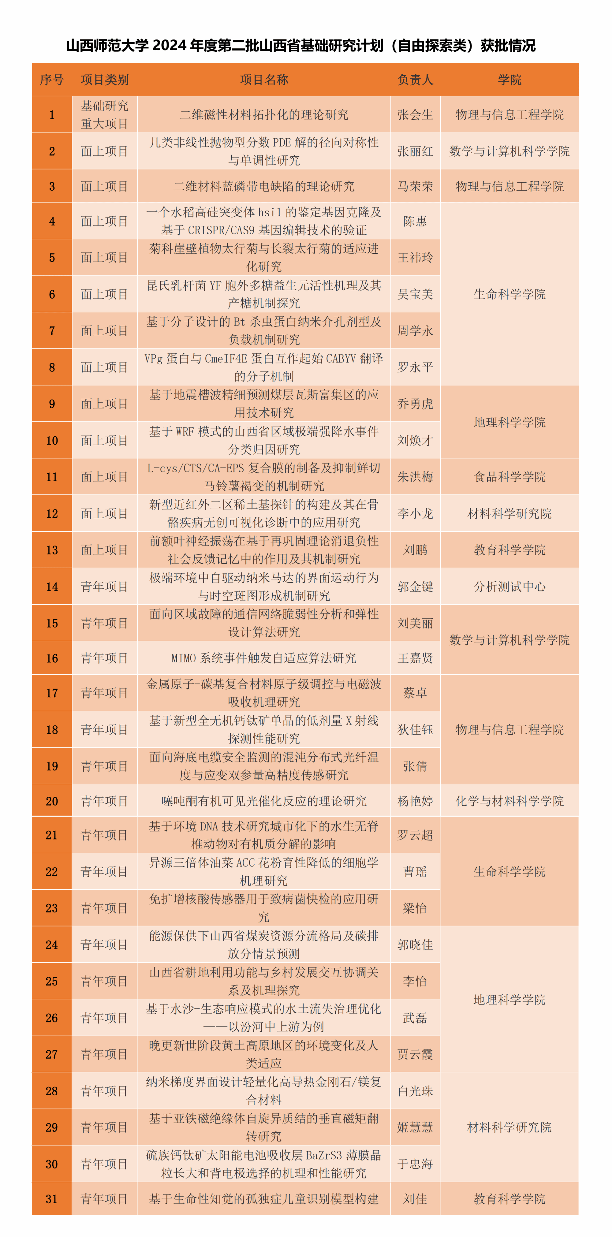 永利官网2024年度山西省基础研究计划(自由探索类)第二批立项再获佳绩